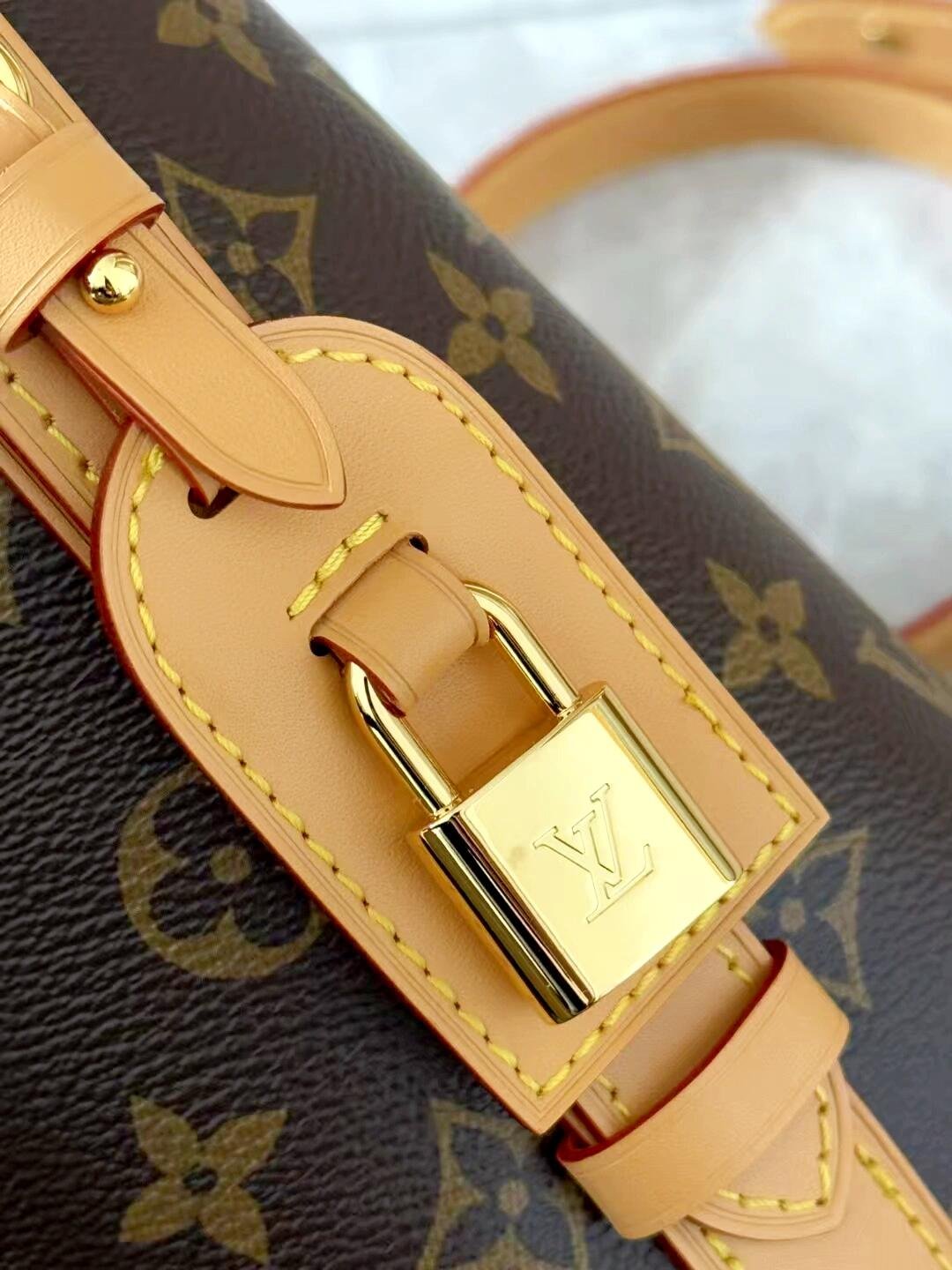With generous storage space, the All In BB is designed for days spent on the go. It is crafted from iconic Monogram canvas elevated with gold-toned hardware, and comes with a signature padlock and name tag. The adjustable strap is inspired by the House’s heritage trunks and, along with an additional leather strap, offers cross-body and shoulder carry options. Thanks to the foldable design, its profile can be styled open or flat.
