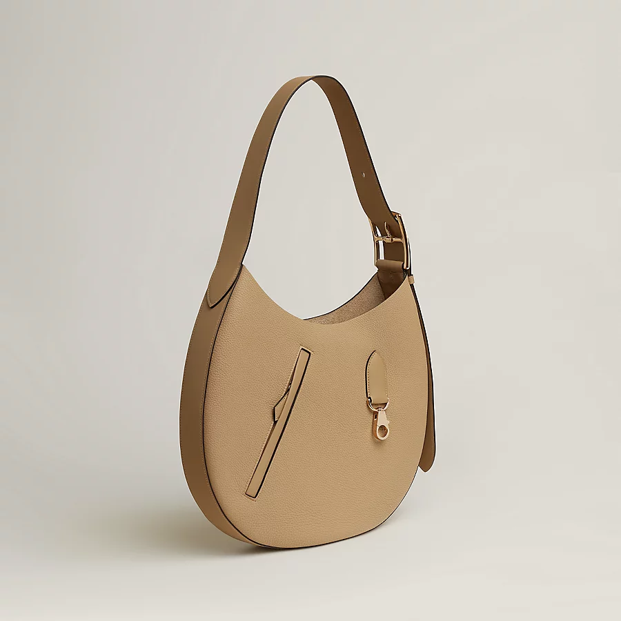 Inspired by Margiela’s “Poches en liberte” and saddle flaps, the Arcon bag introduces a new round format with a generous volume, sleek design and a bold signature.