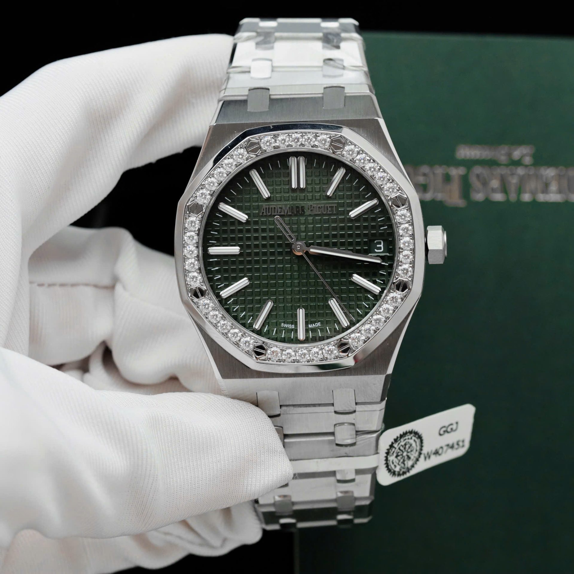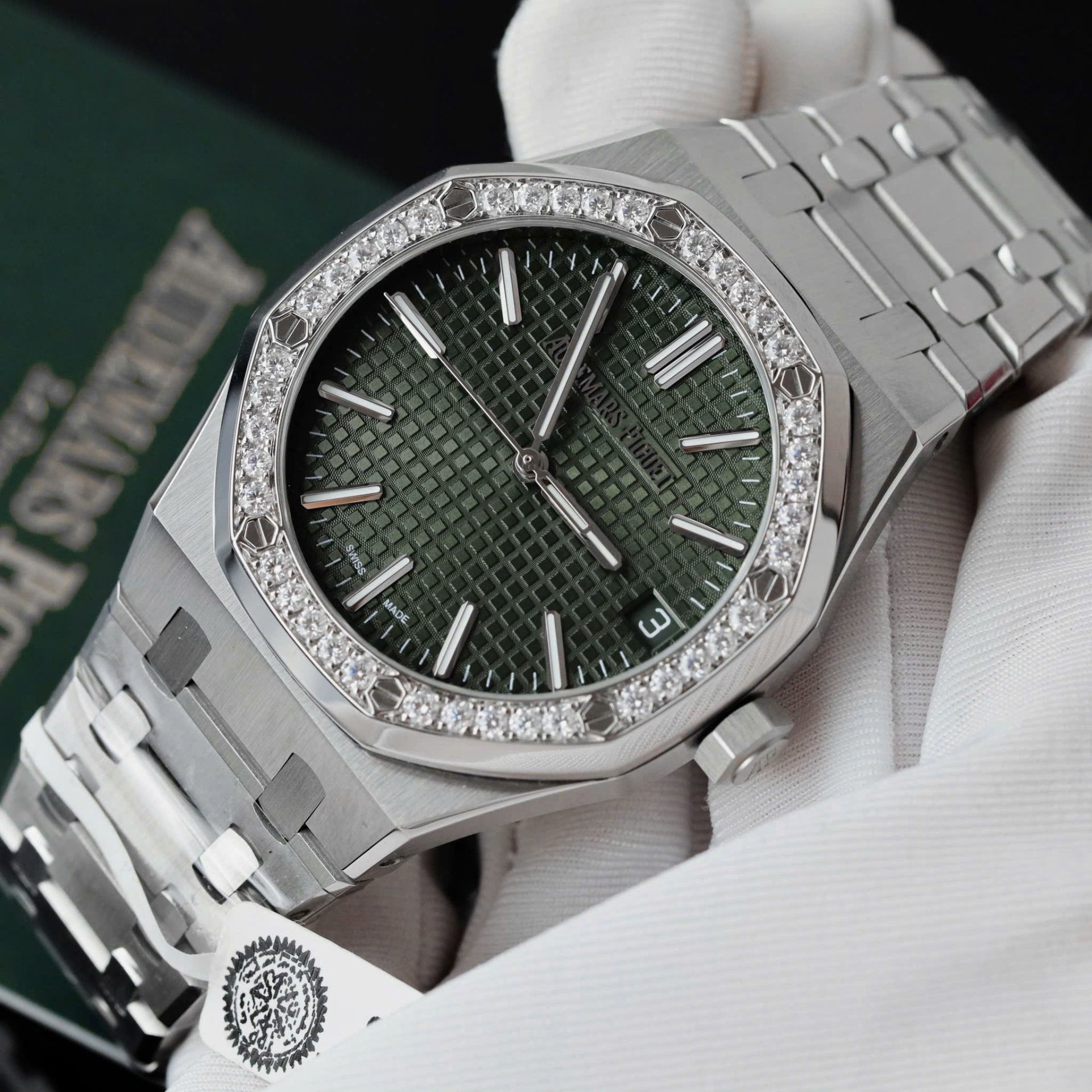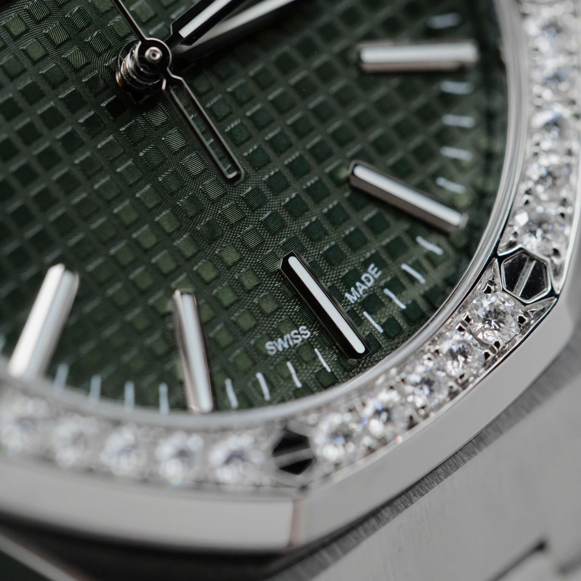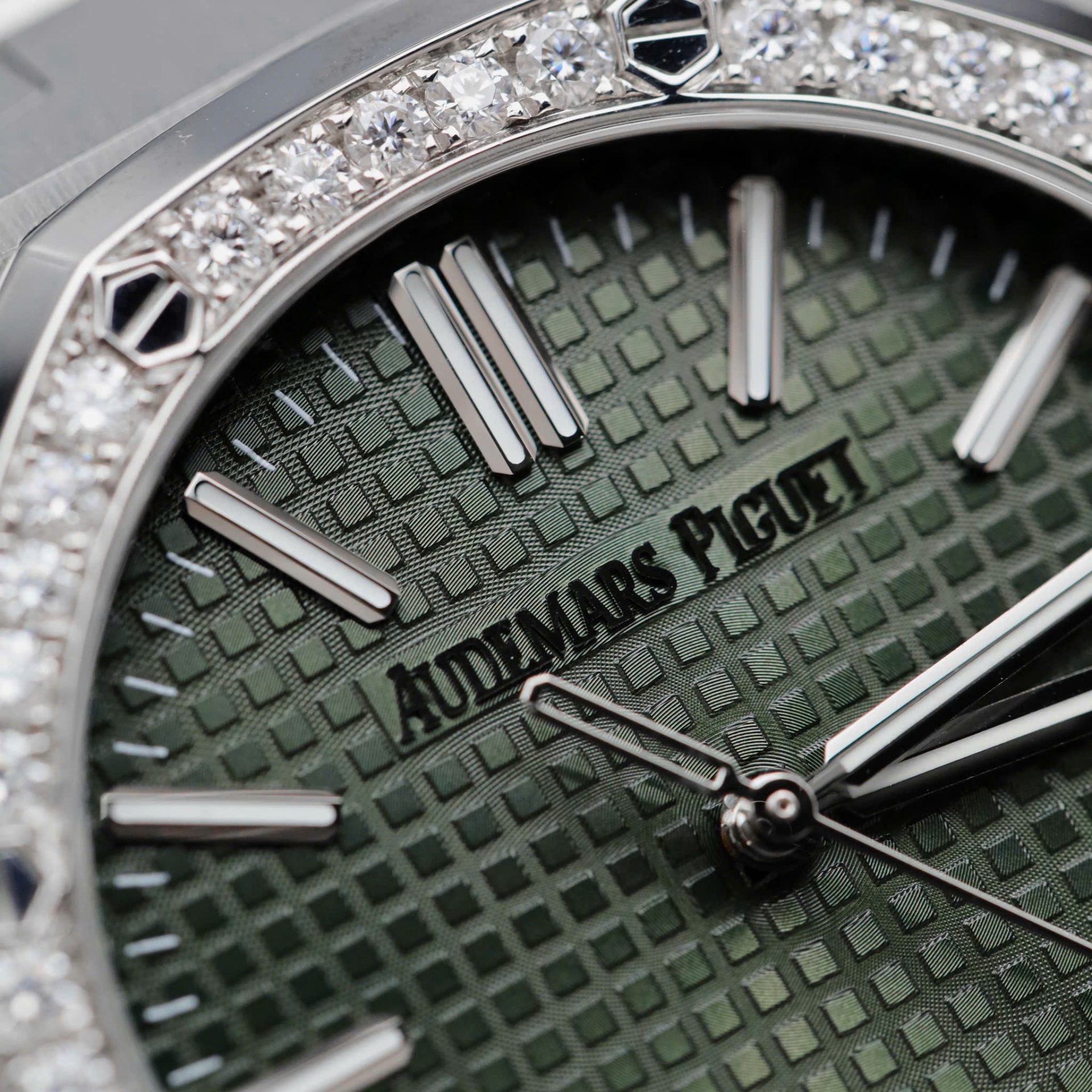 Audemars Piguet Royal Oak 15510ST Imitation Watches Green Dial Bezel Moissanite Diamonds 41mm