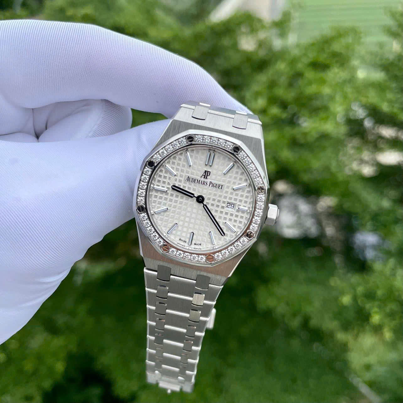 Audemars Piguet Royal Oak Women White Dial Custom Bezel Diamonds Moissanite 34mm