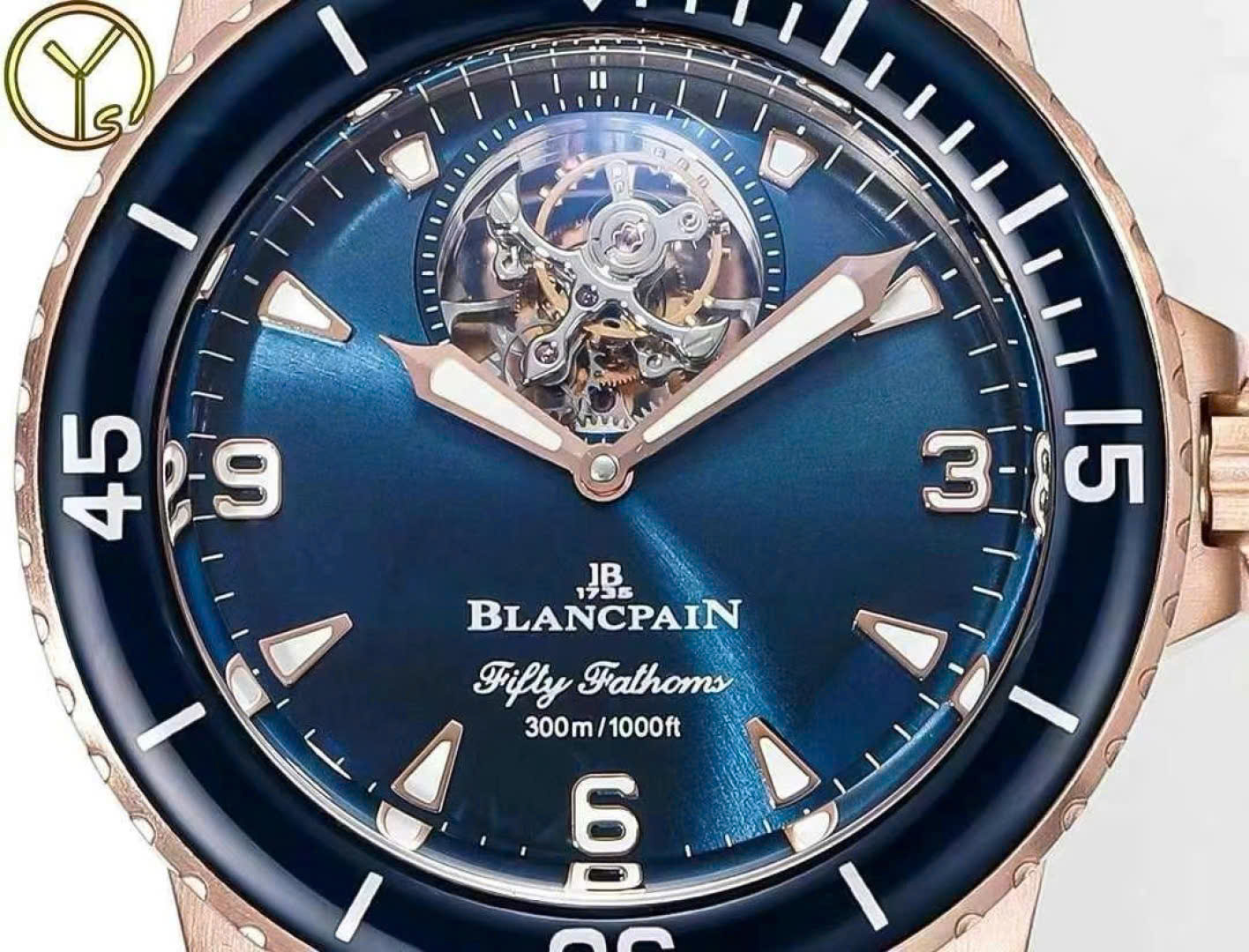 Blancpain Fifty Fathoms Tourbillon 8 Jours Replica Watch Rose Gold Blue Dial YS Factory 45mm