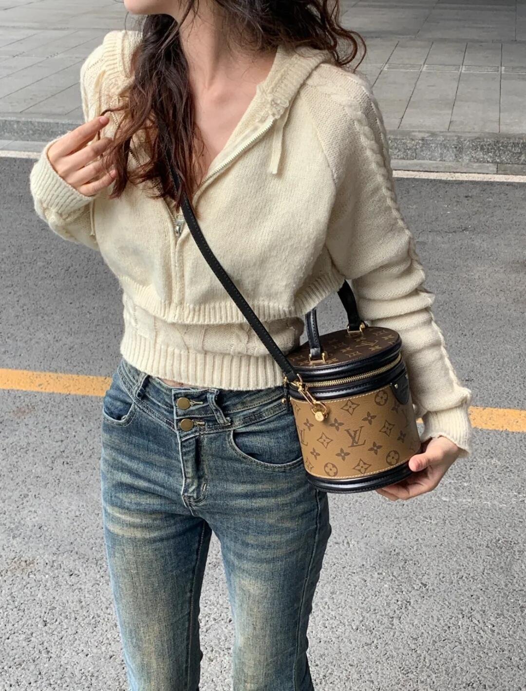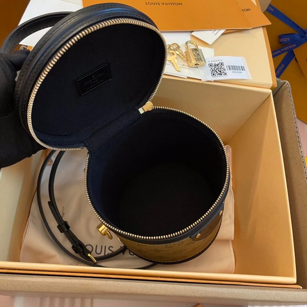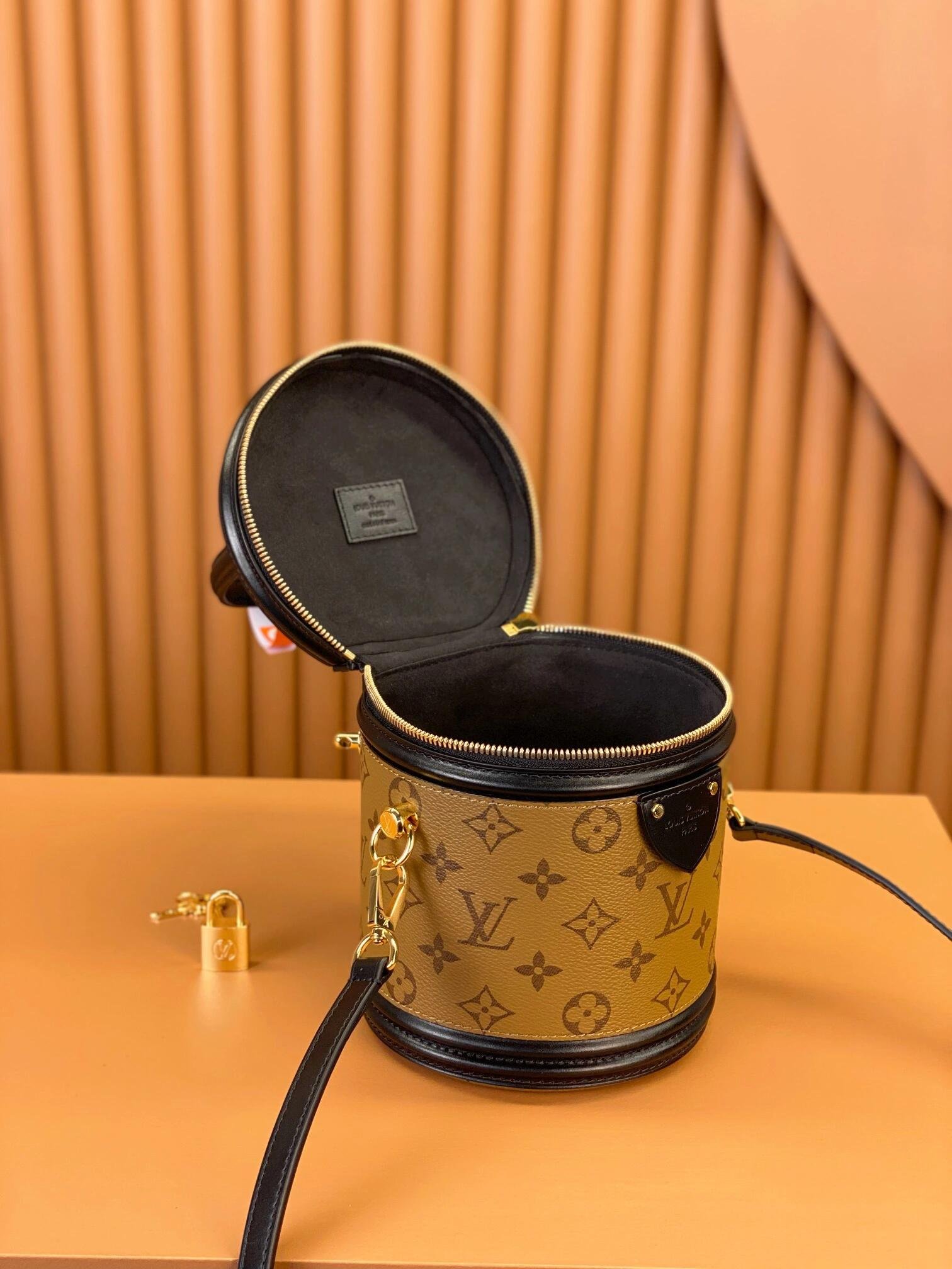 Featuring the historical shape of the LV Cannes beauty case, designer Nicolas Ghesquière revives a long-standing classic with the Cannes handbag. Petite in size and presented in a mix of Monogram and Monogram reverse coated canvas, the elegant piece reanimates a traditional silhouette steeped in Louis Vuitton heritage. A removable leather strap and top handle provide a range of carrying options.