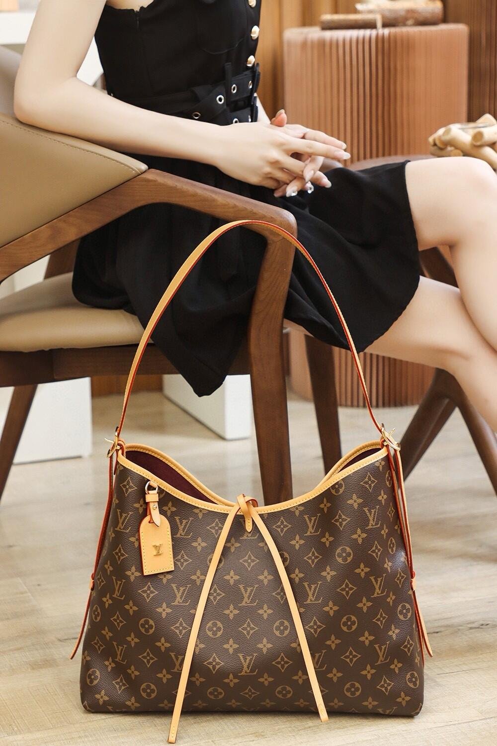 Louis Vuitton launches the CarryAll MM handbag in Monogram canvas with natural leather trim. Its contemporary, body-friendly design and roomy interior make this a fantastic everyday bag. Inside zipped pockets and a removable zipped pouch deliver even more functionality. A gold-color buckle allows the handle to be shortened or lengthened.