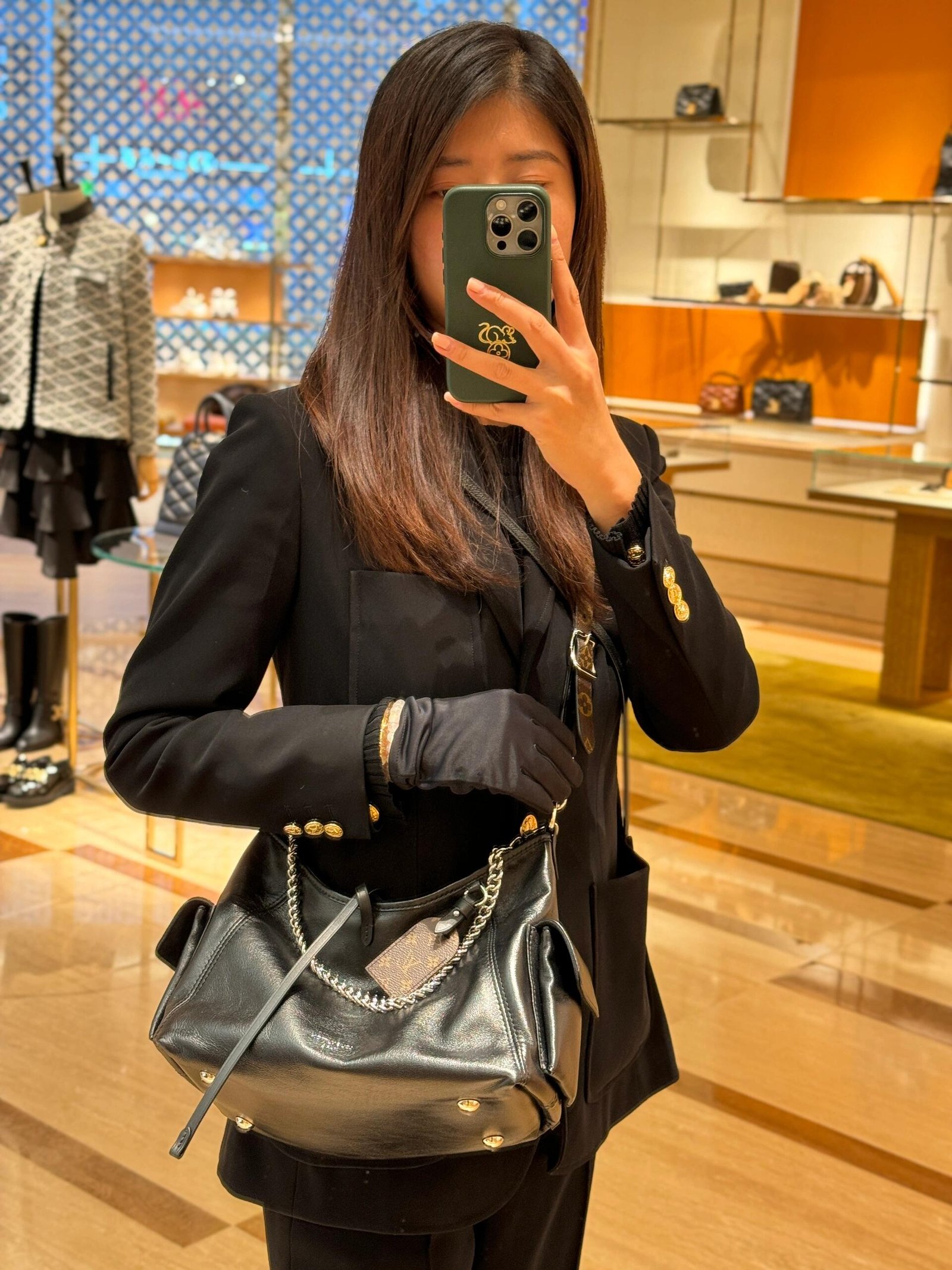 A standout accessory from the Spring-Summer 2024, the CarryAll Vibe MM handbag features a cool, super-slouchy silhouette – a bold complement to the season’s looks. The ultra-soft lambskin has a touchable, slightly “rumpled” aspect, beautifully set off by polished palladium-finish hardware. A pleasure to carry, this capacious piece easily accommodates a day’s essentials.