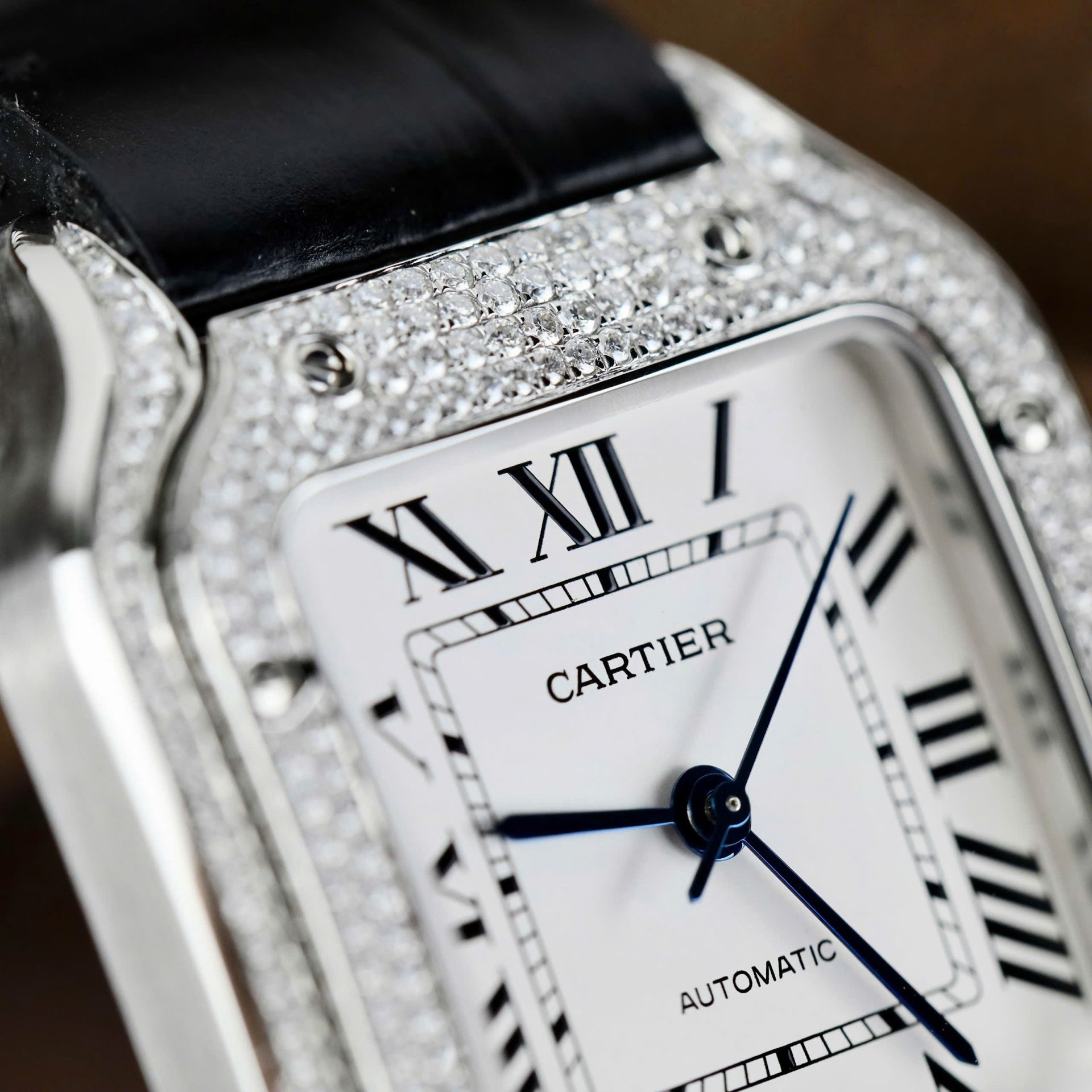 Cartier Santos Women-s Replica Watches Moissanite Diamonds Custom BV Factory 35.2mm