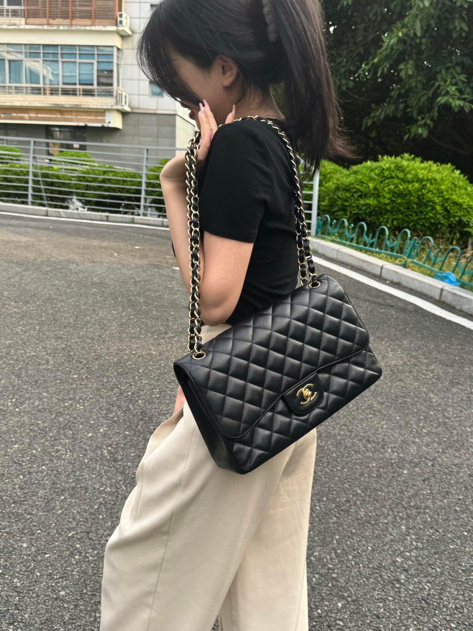 Chanel Classic Flap Jumbo – Black Caviar Leather & Gold-Tone Metal
