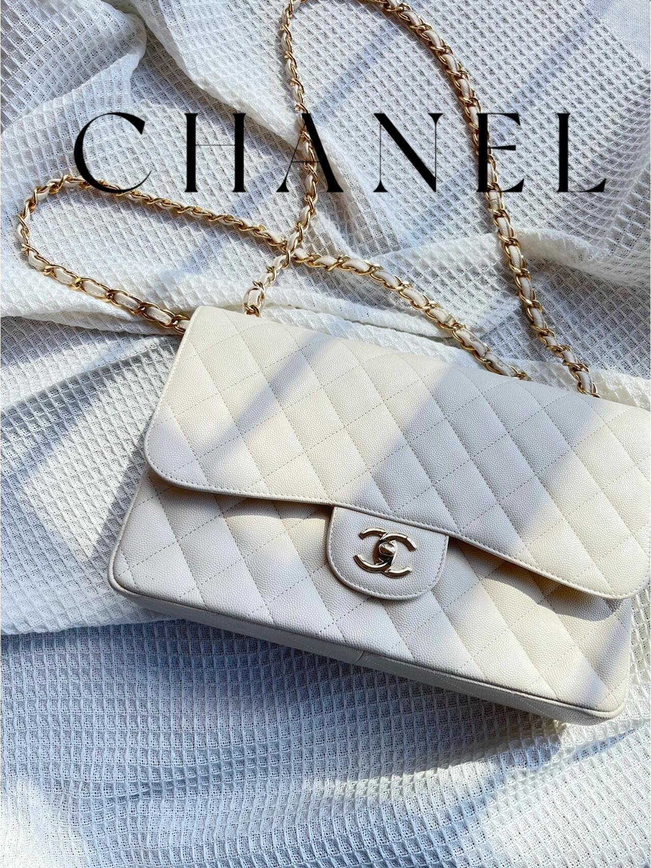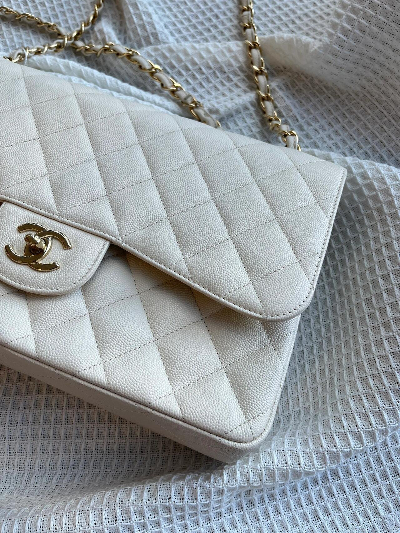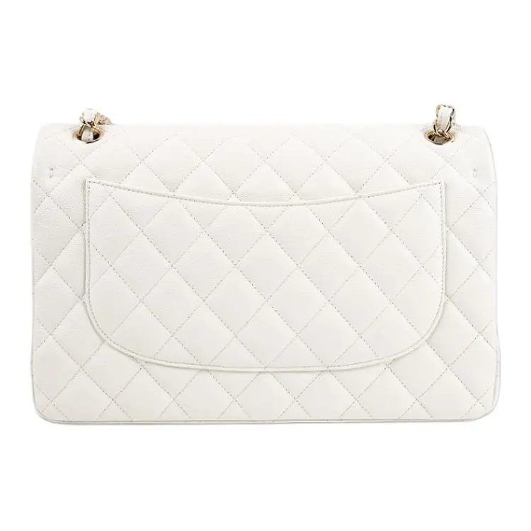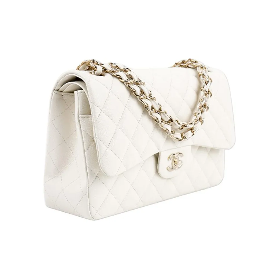 Chanel Classic Flap Jumbo – White Caviar Leather & Gold-Tone Metal