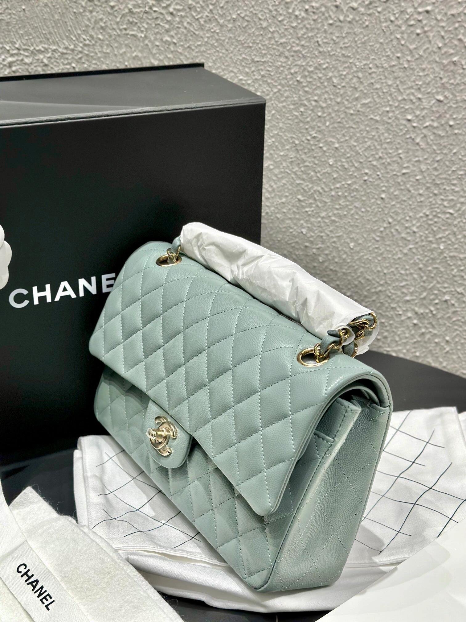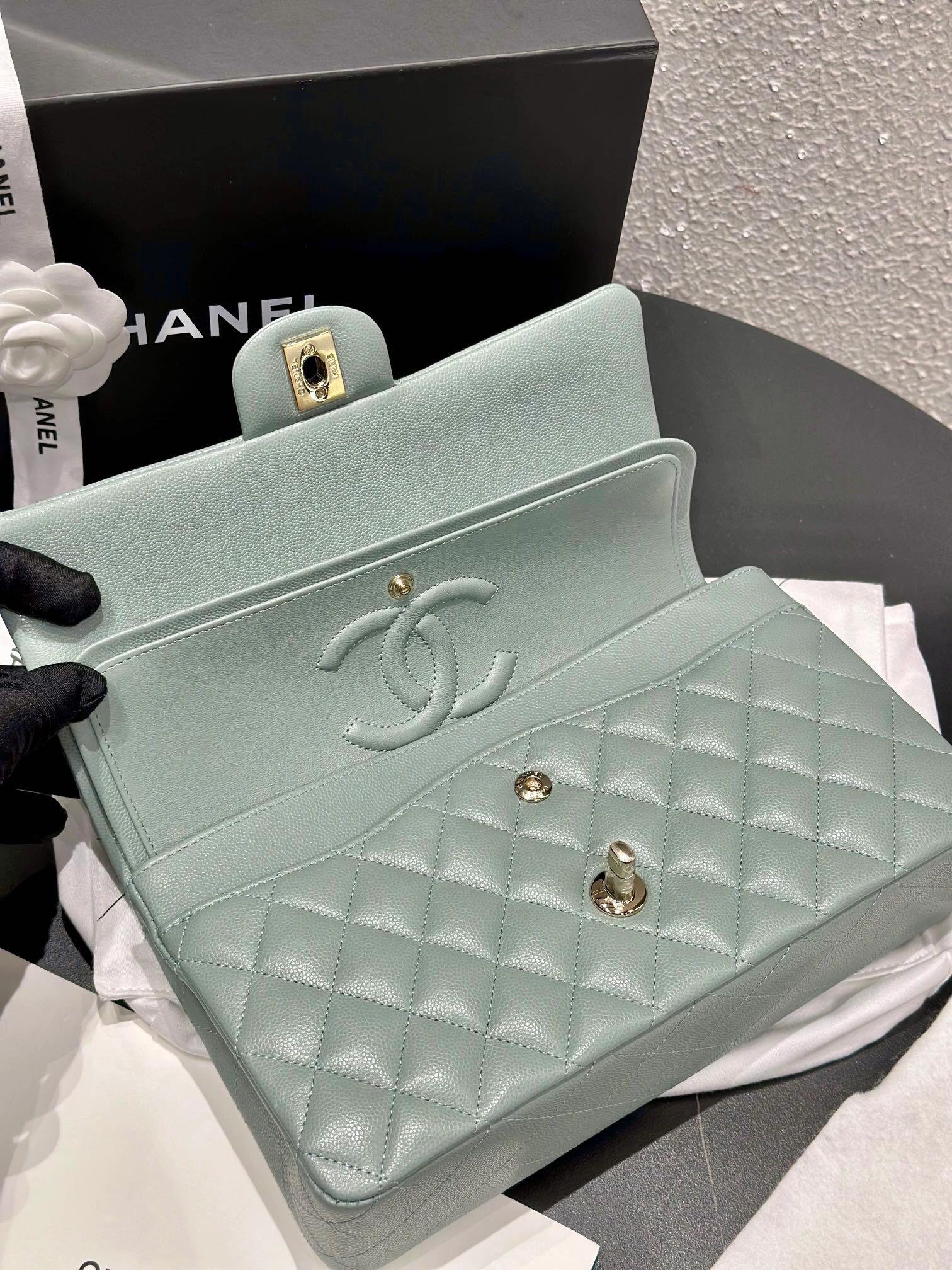 Chanel Classic Flap Medium (25cm) – Muted Grey-Purple Caviar Leather with Gold-Tone Metal