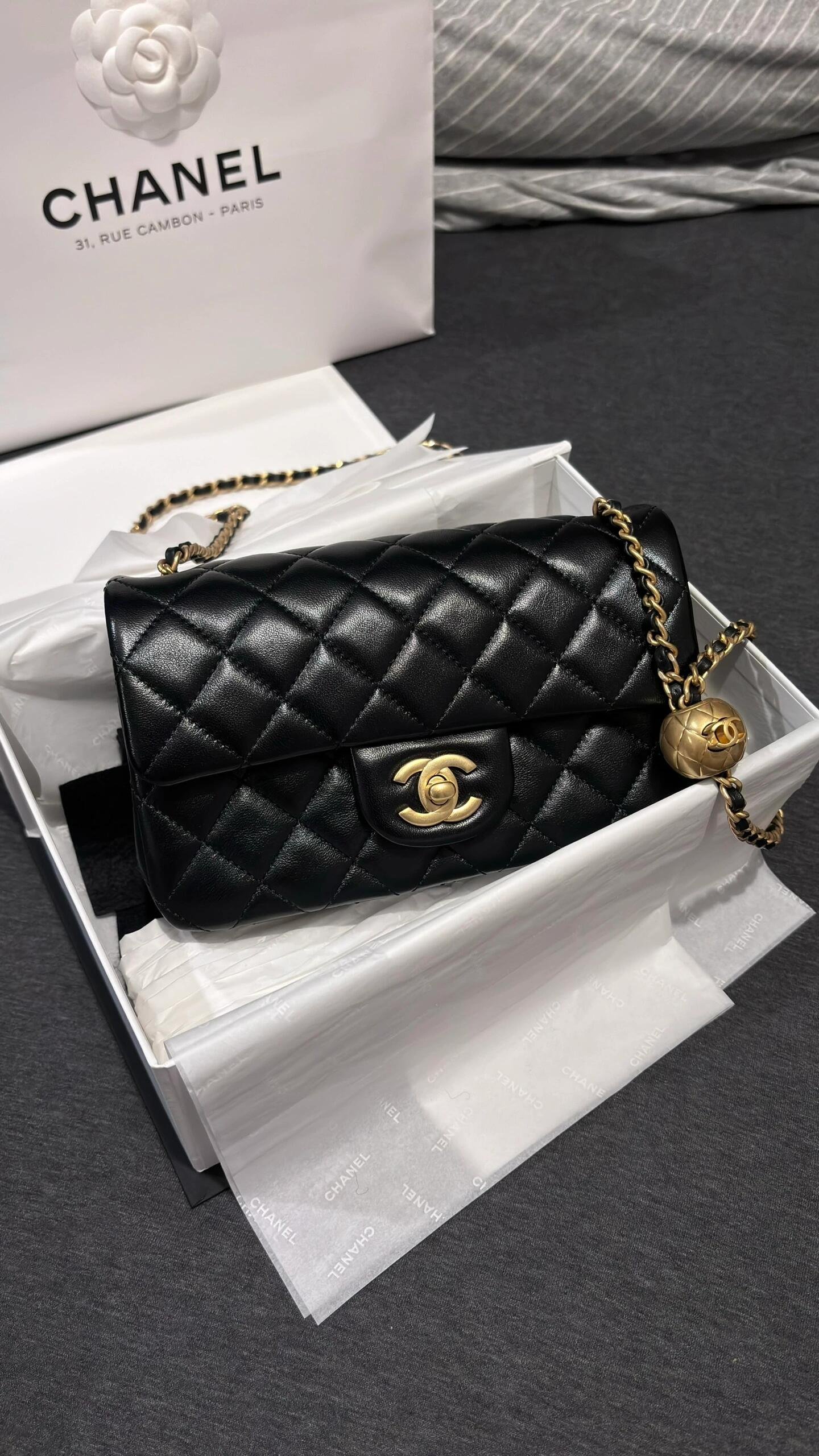 Chanel Classic Flap Mini – Black Lambskin & Gold-Tone Metal – Pearl Crush
