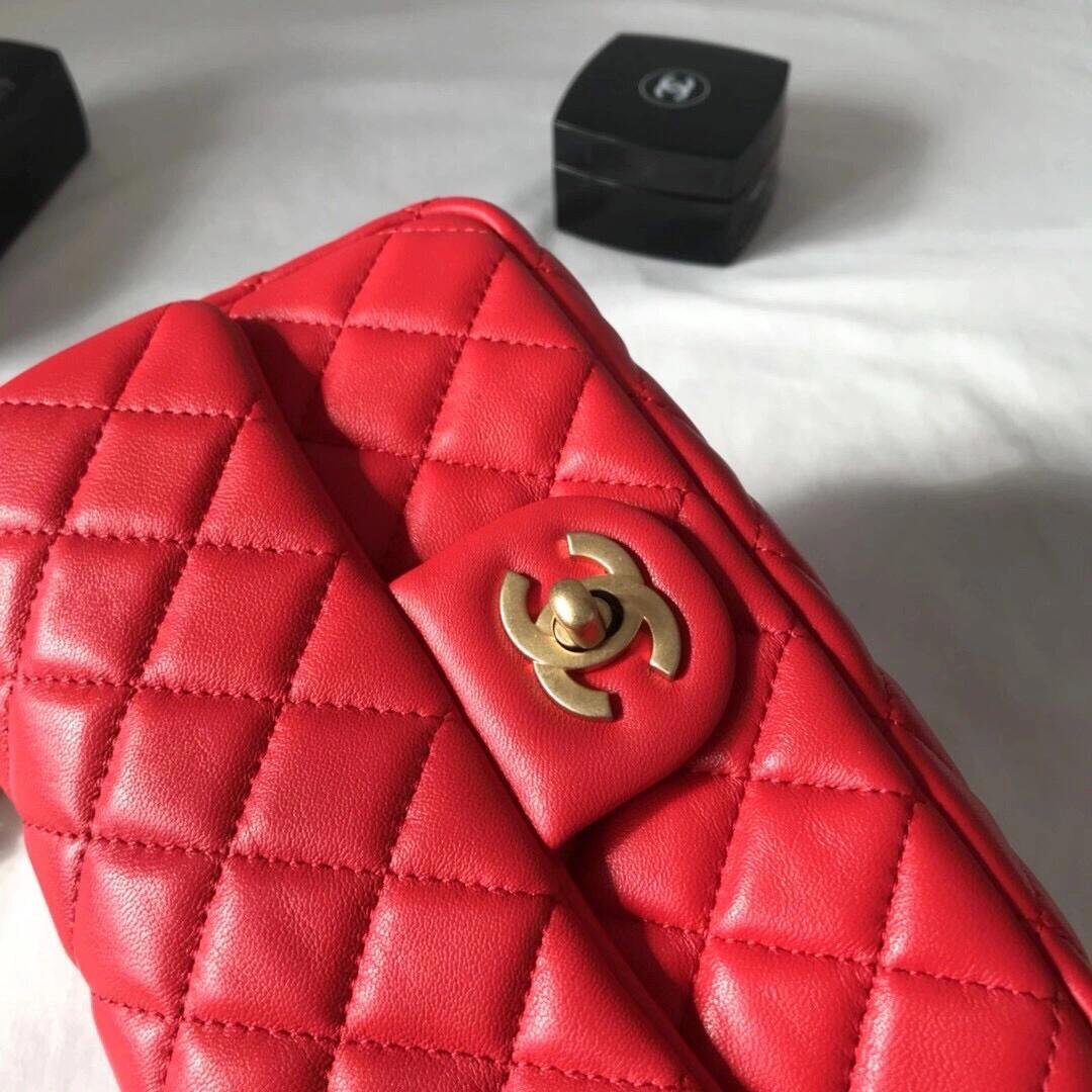 Chanel Classic Flap Mini – Red Lambskin & Gold-Tone Metal – Pearl Crush