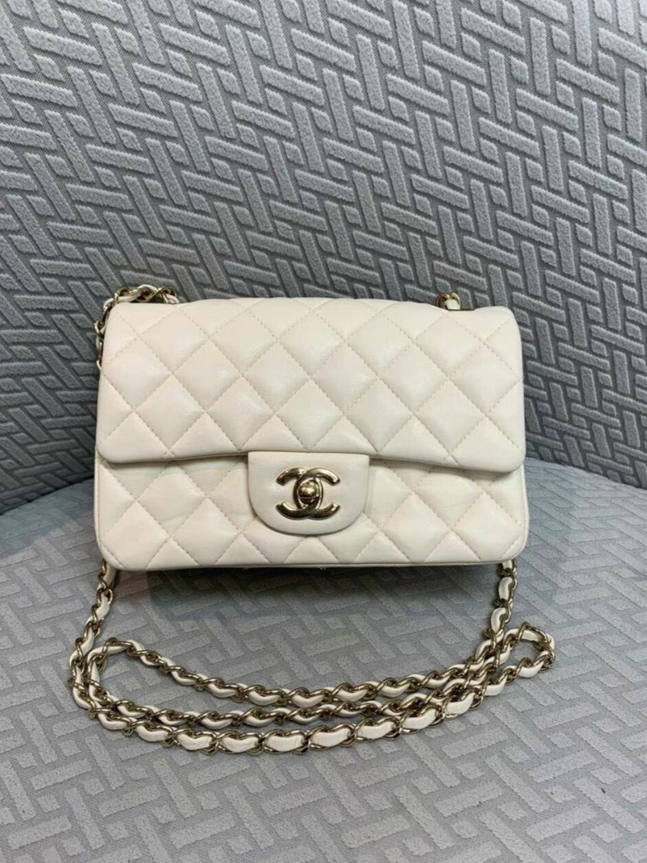 Chanel Classic Flap Mini – White Lambskin & Gold-Tone Metal Chain