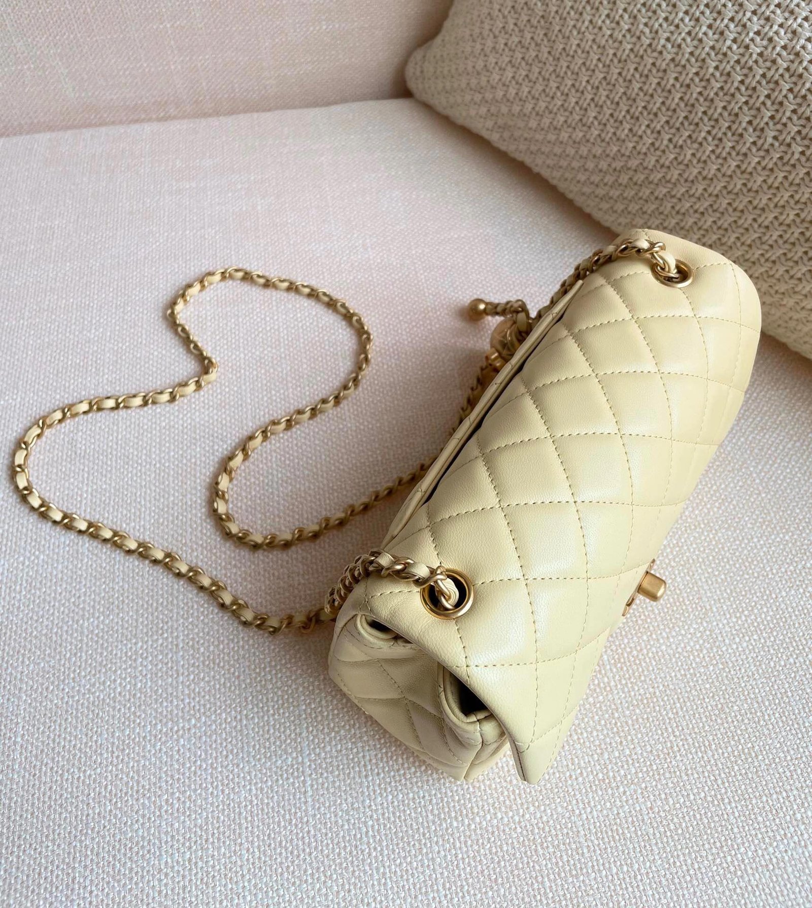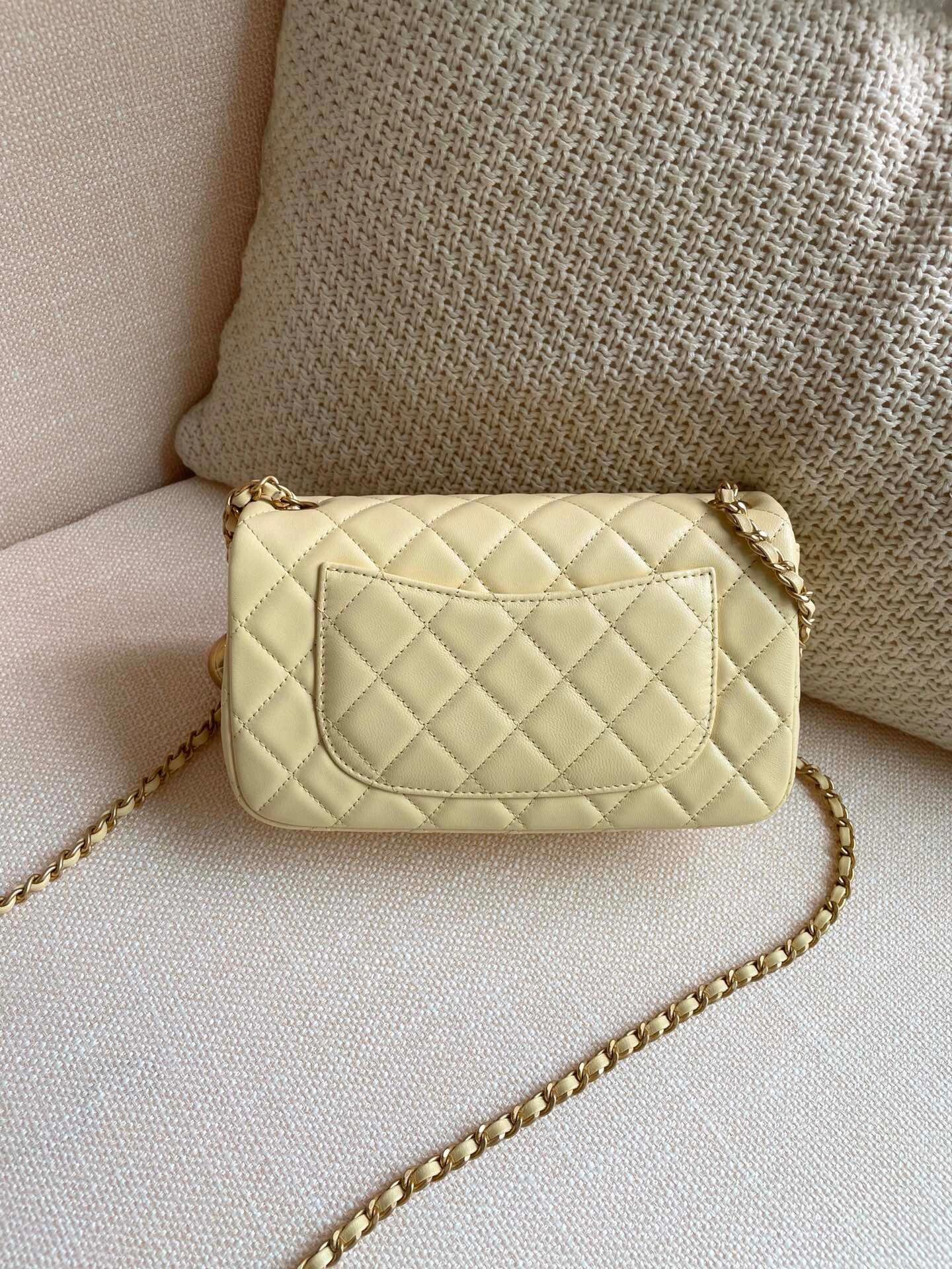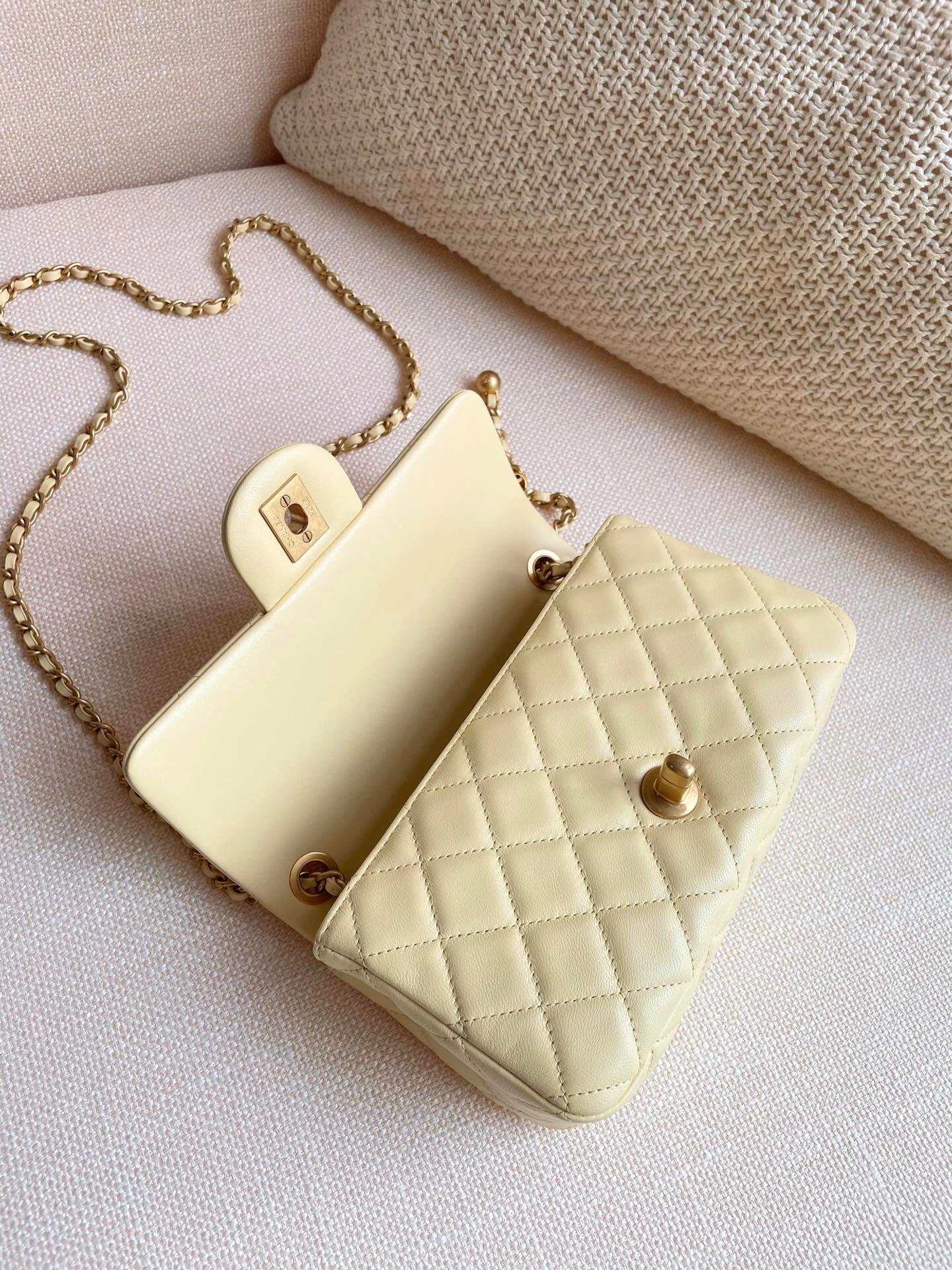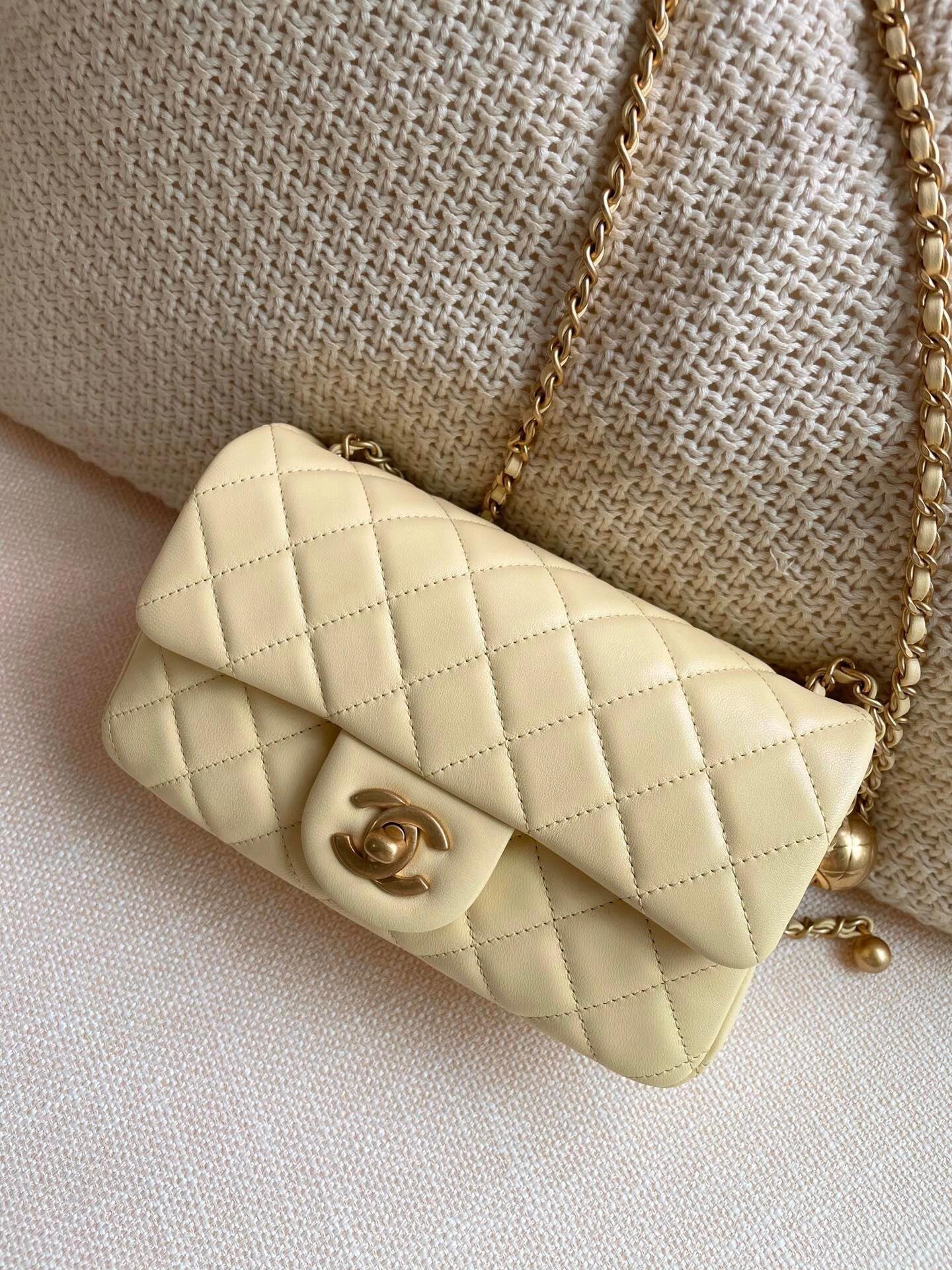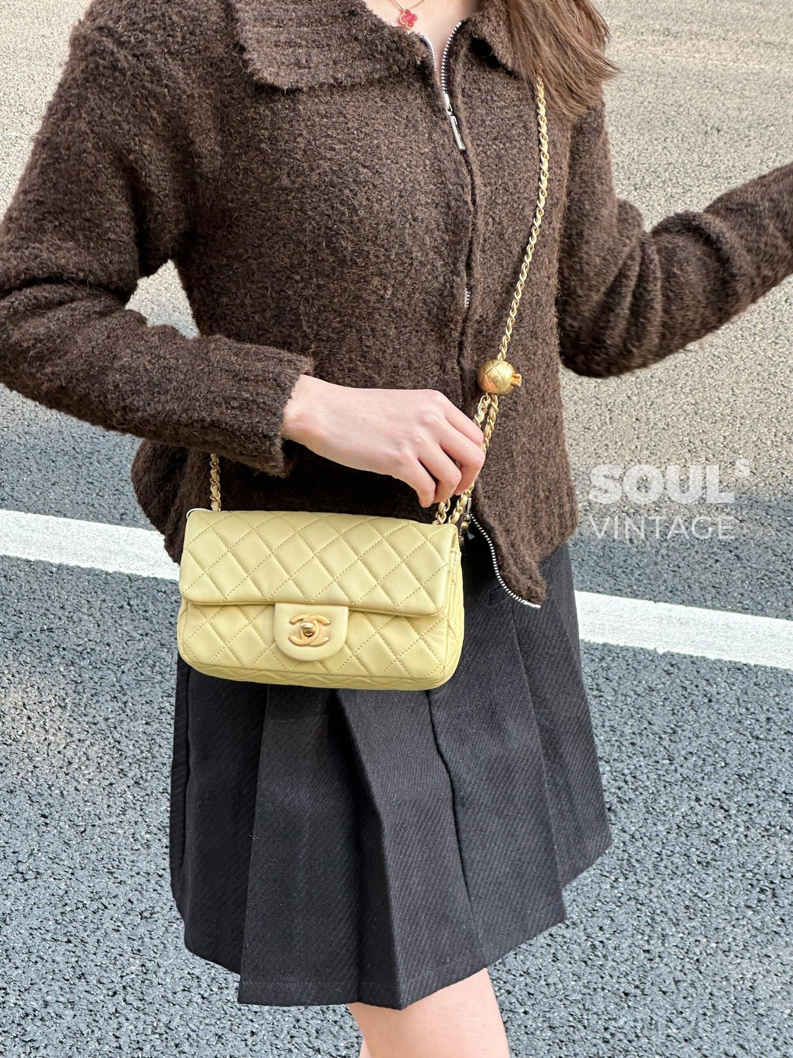 Chanel Classic Flap Mini – Yellow Lambskin & Gold-Tone Metal – Pearl Crush
