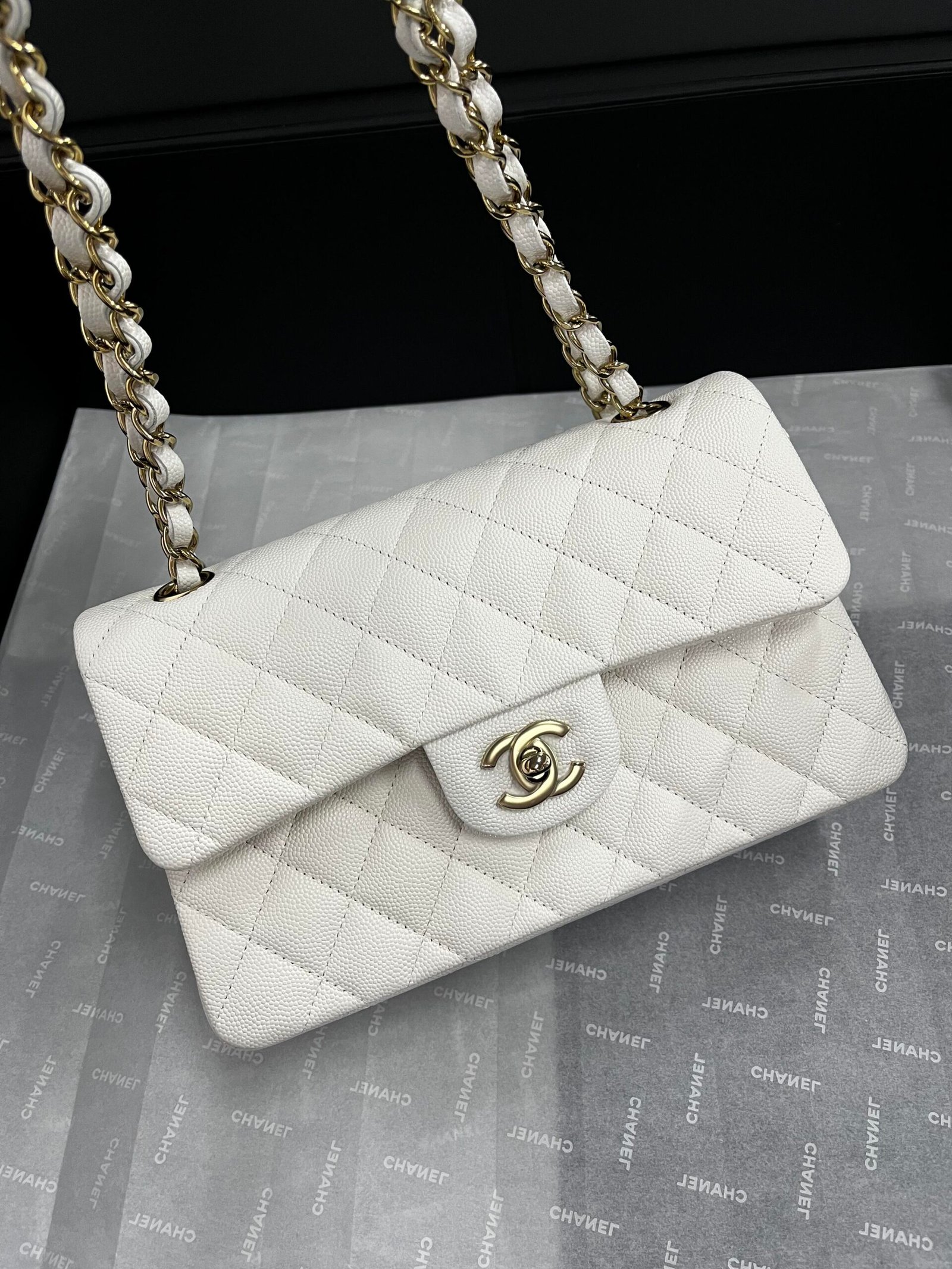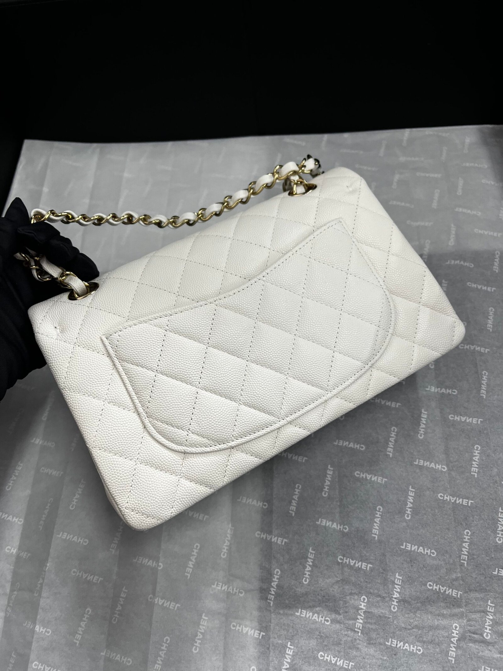 Chanel Classic Flap Small (23cm) – White Caviar Leather with Gold-Tone Metal