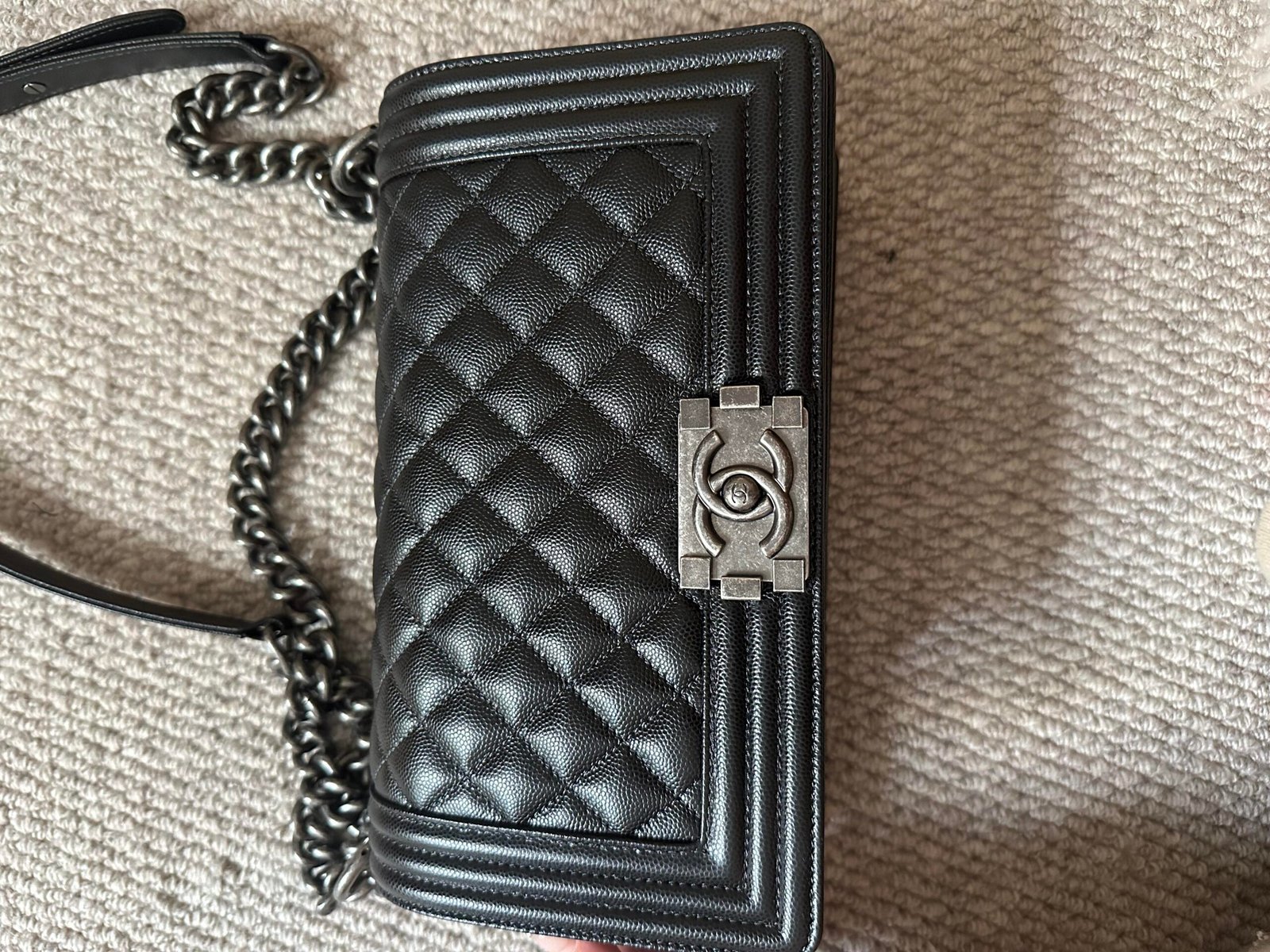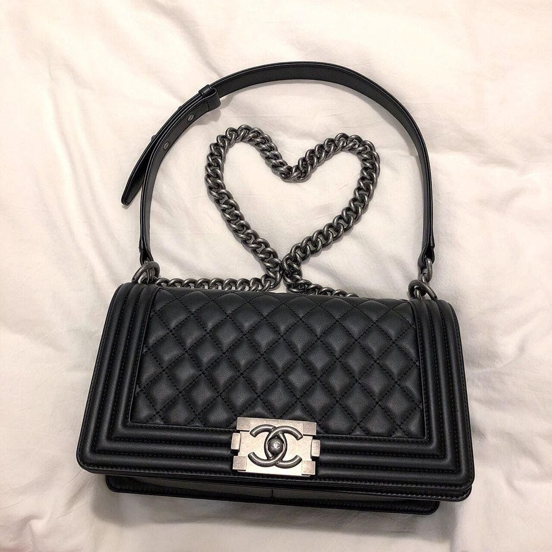 CHANEL Le Boy Bag – Aged Silver-Tone Hardware
