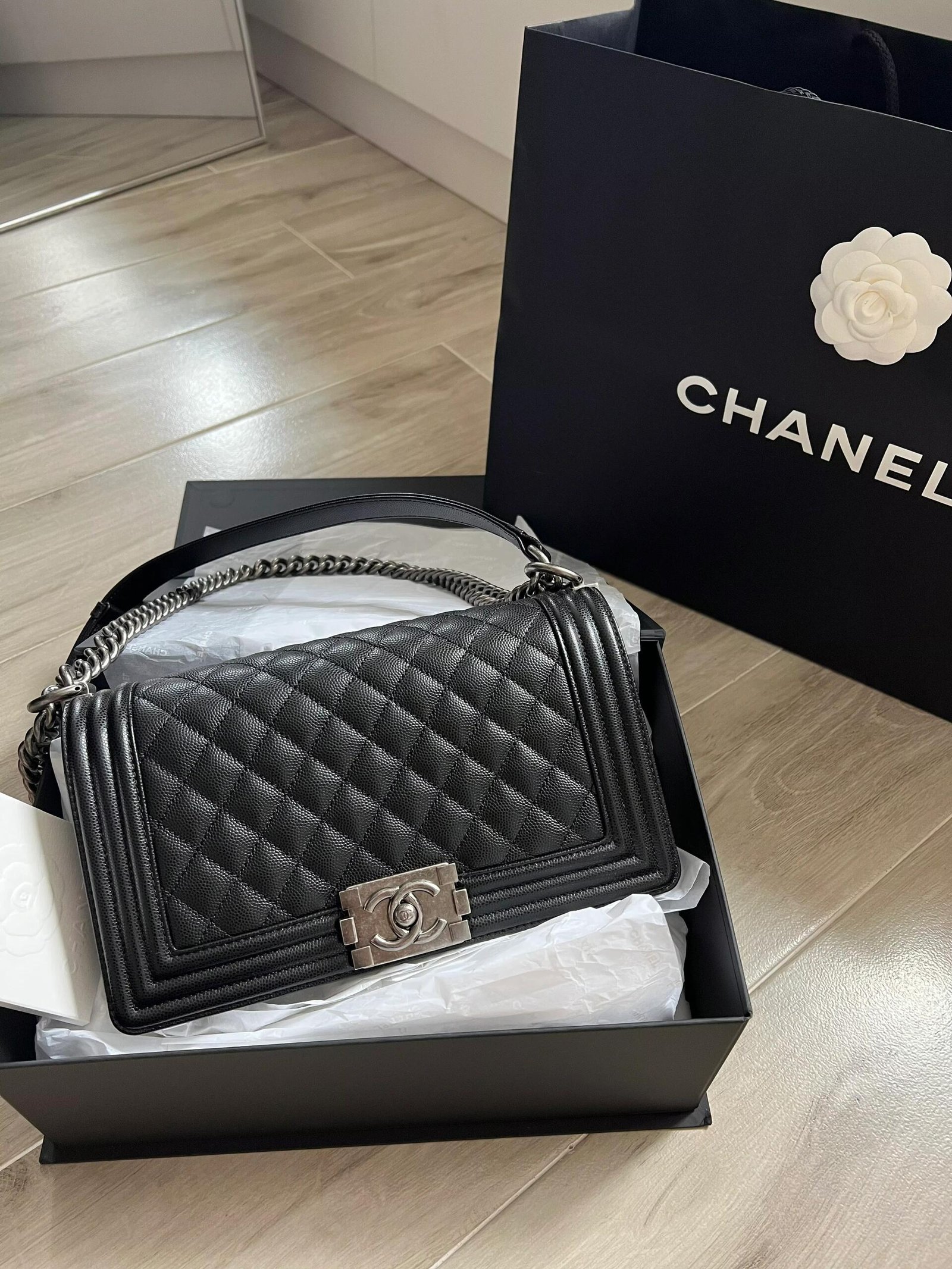 Be the first to review “CHANEL Le Boy Bag – Aged Silver-Tone Hardware” Cancel reply