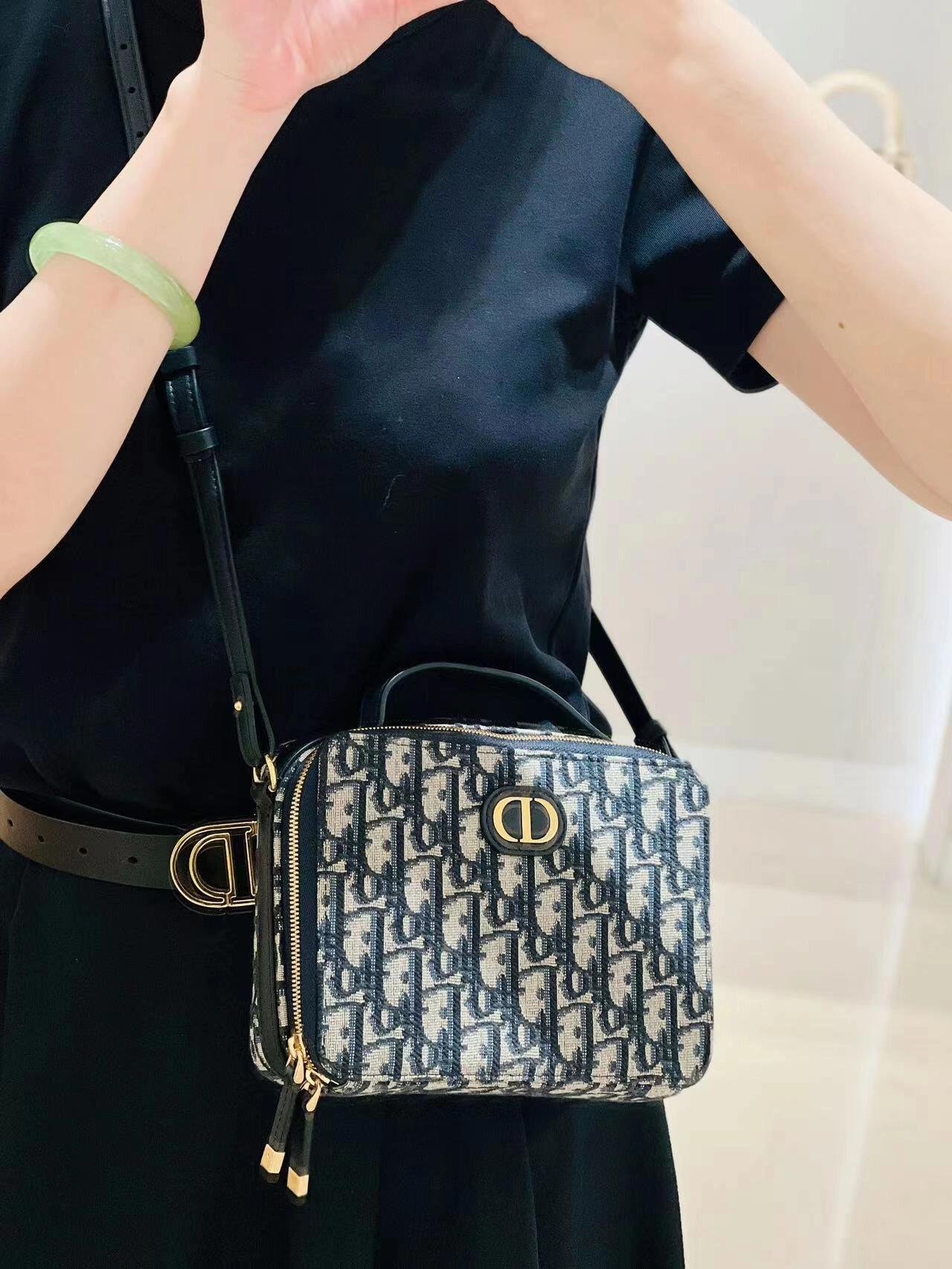 DIOR 30 Montaigne Jacquard Leather Top Handle Crossbody Shoulder Bag