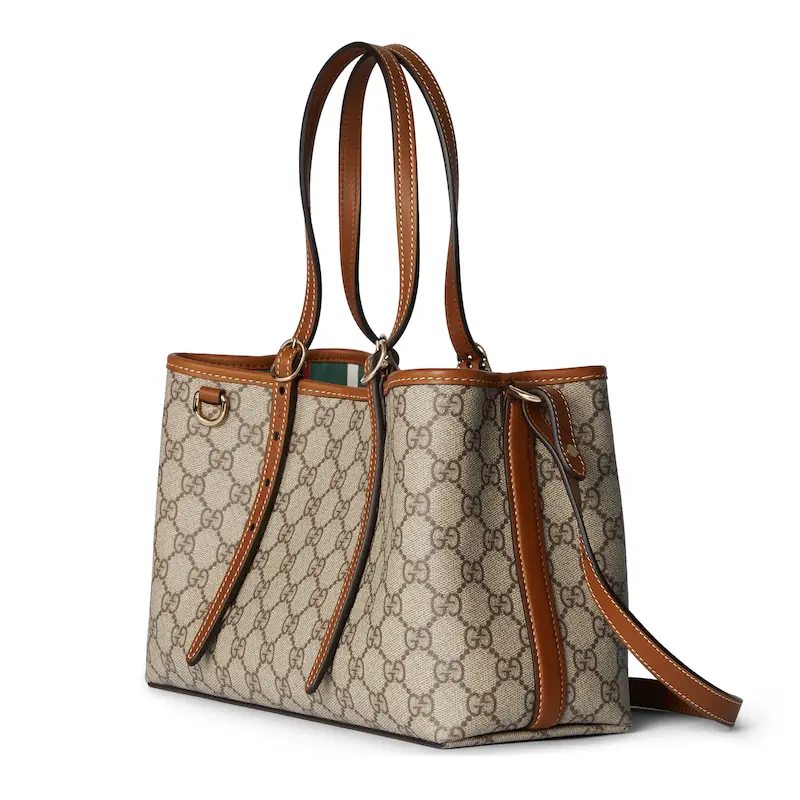 The new GG Emblem collection reinterprets the House’s history of elegance and craftsmanship. This tote bag features numbered notches on the adjustable top handles, inspired by the equestrian world.