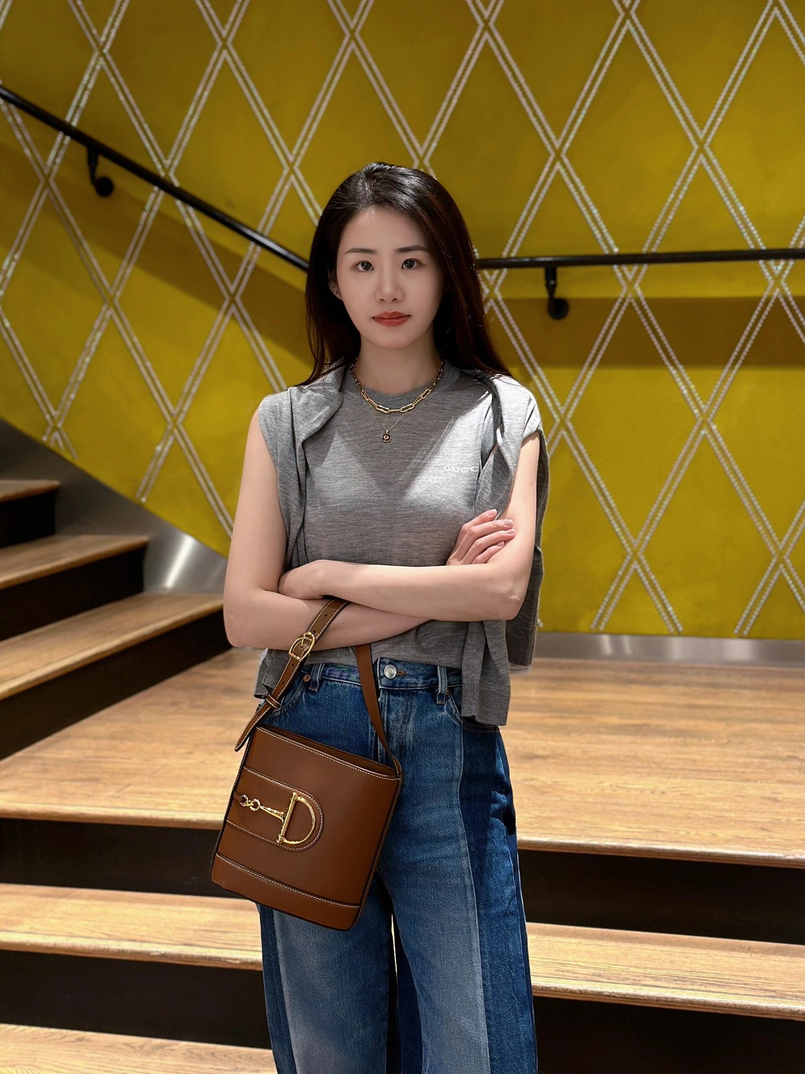 In the Spring Summer 2025 collection, the Gucci 73 is inspired by an archival bucket bag from its eponymous year. It features a contemporary take on the Horsebit hardware, and can be worn crossbody, over the shoulder or held as a handbag.