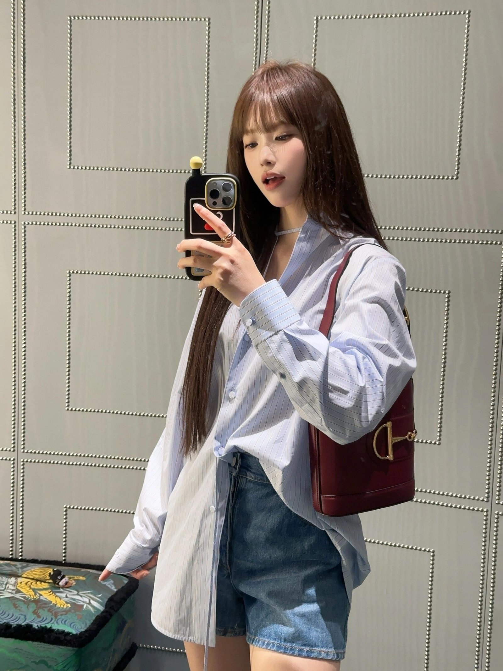 - Gold-toned, maxi half Horsebit hardware