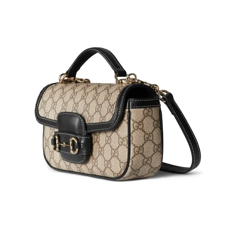 The Gucci Horsebit 1955 Soft continues its equestrian-inspired design with the double ring and bar hardware, blending light gold-toned details and soft, sophisticated coated GG Monogram fabric on this top handle bag, which can also be worn on the shoulder or crossbody.