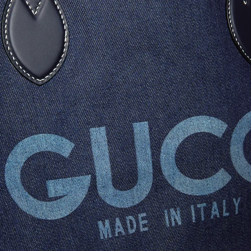 - Dark blue denim on one side, beige and blue GG Supreme on the other