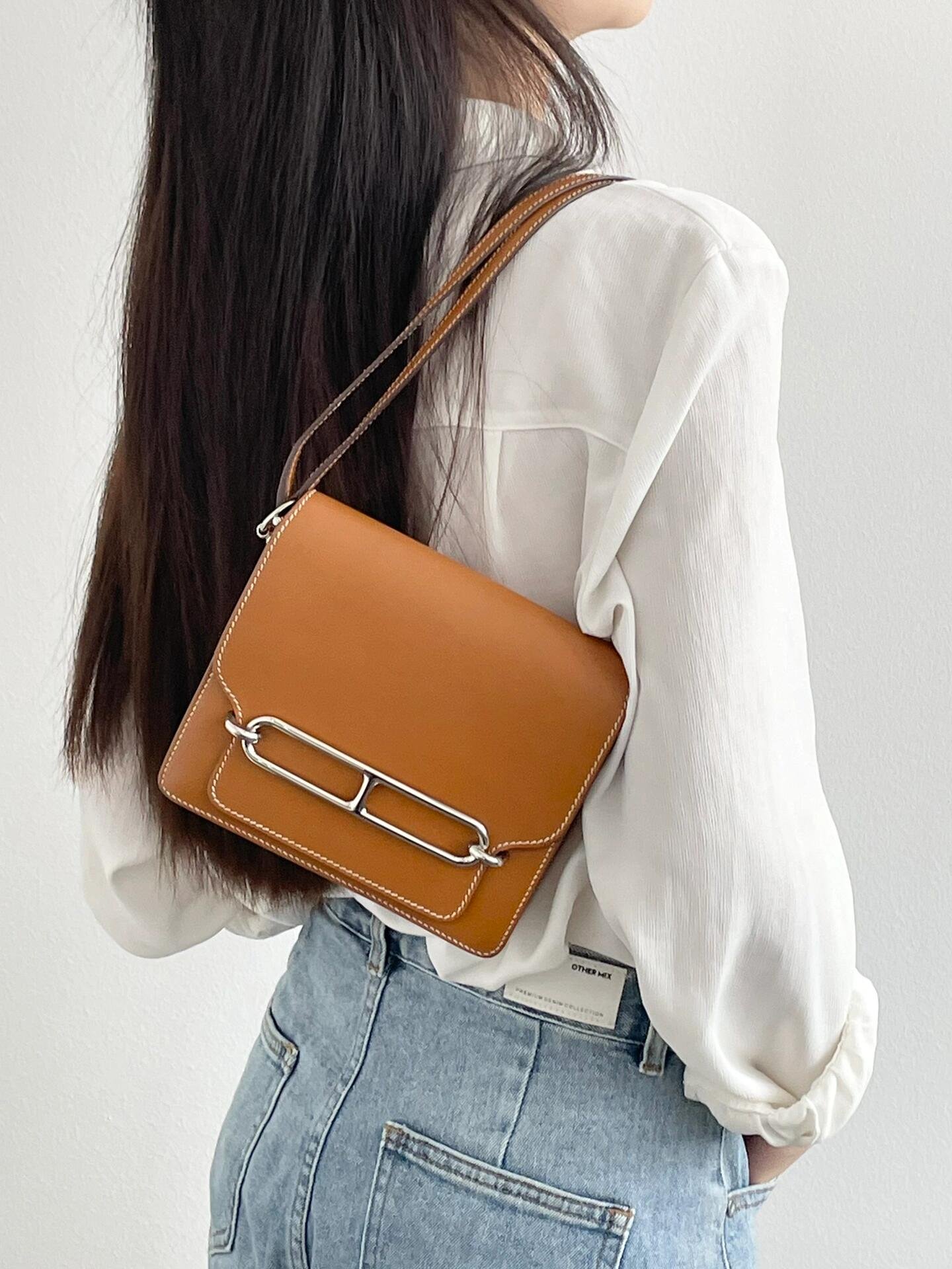 Design Details: Elegant stitching, structured silhouette, modern hardware