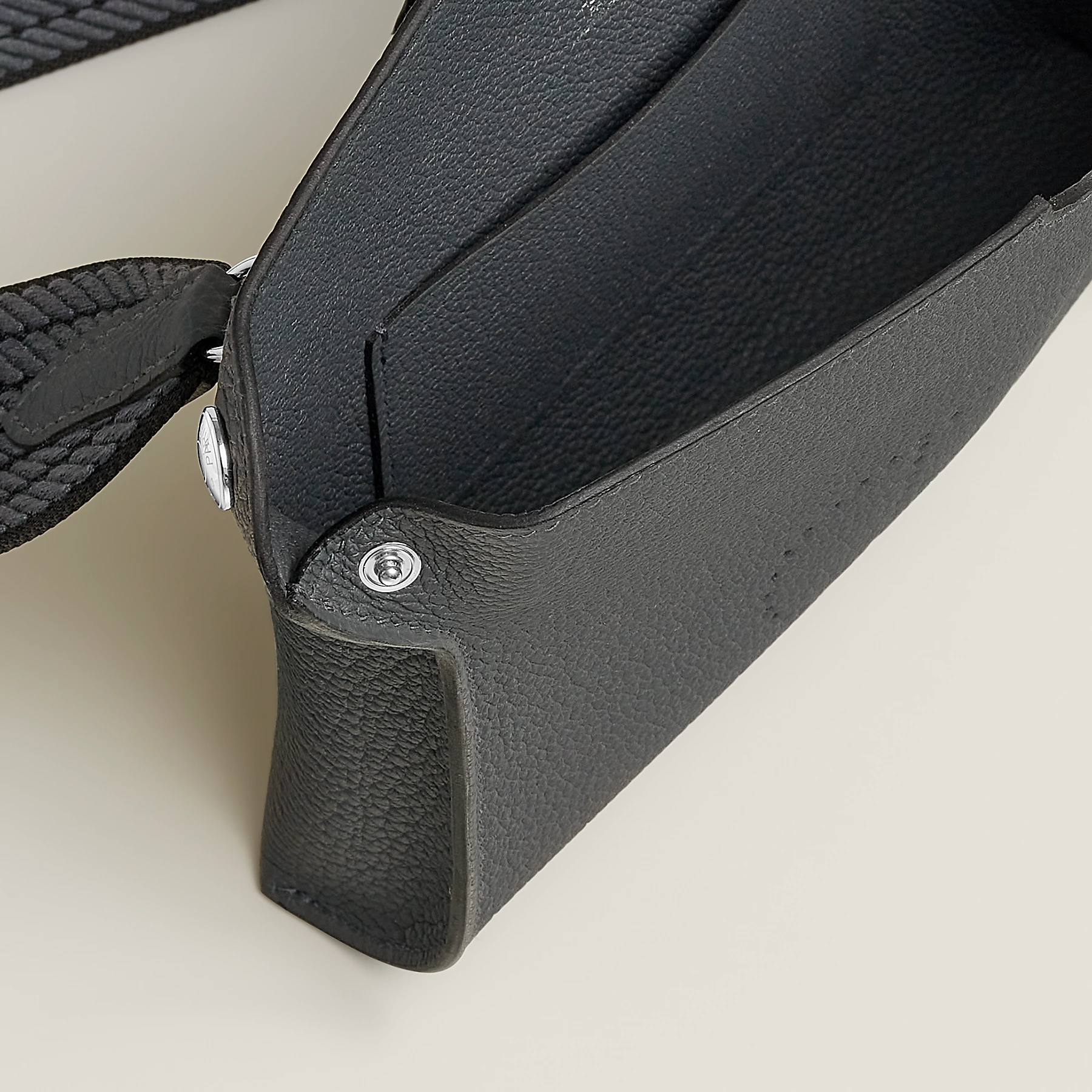 – Origami-inspired opening with two Clou de Selle snap closures