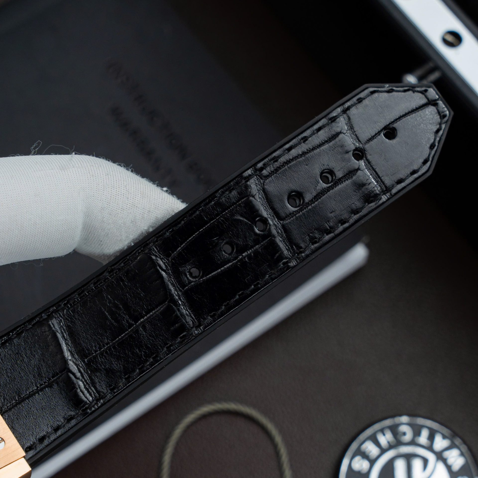 Hublot Classic Fusion King Gold Copies Watch Black Dial Movement SW300 Crocodile Leather Strap 42mm