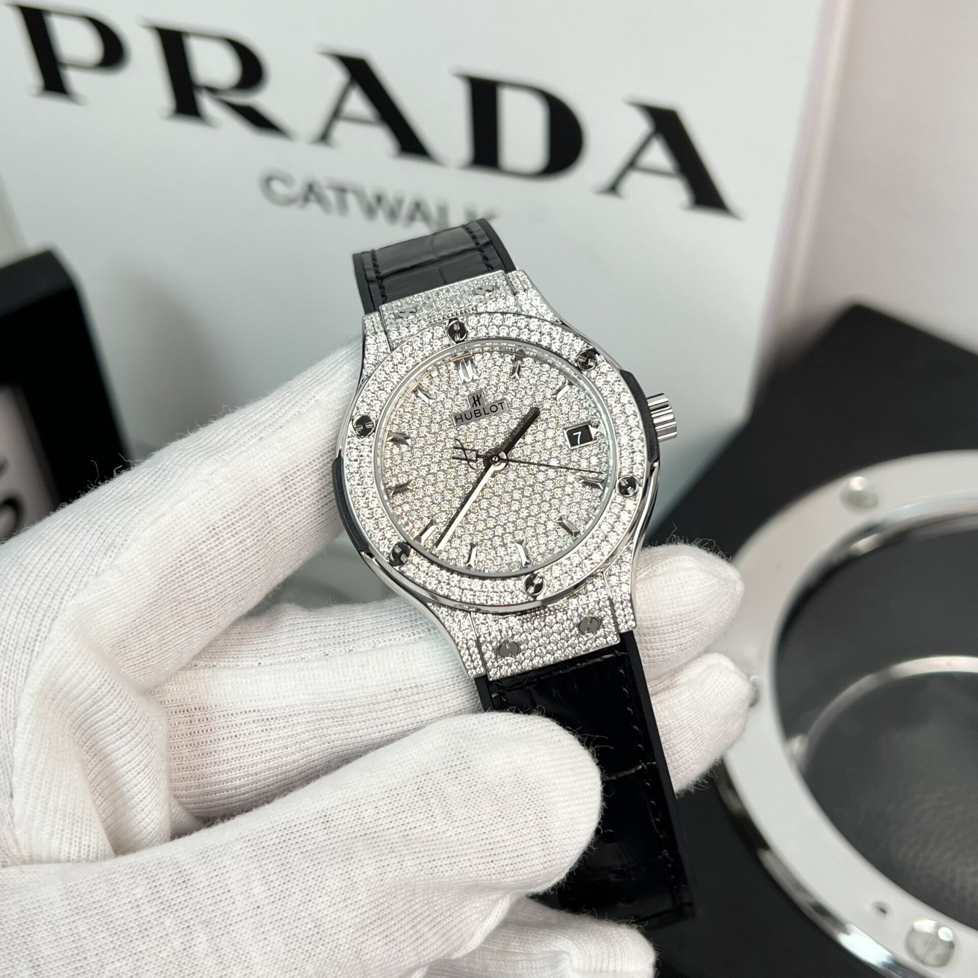 Hublot Classic Fusion Replica Watch With Full Moissanite Black HBF 38mm
