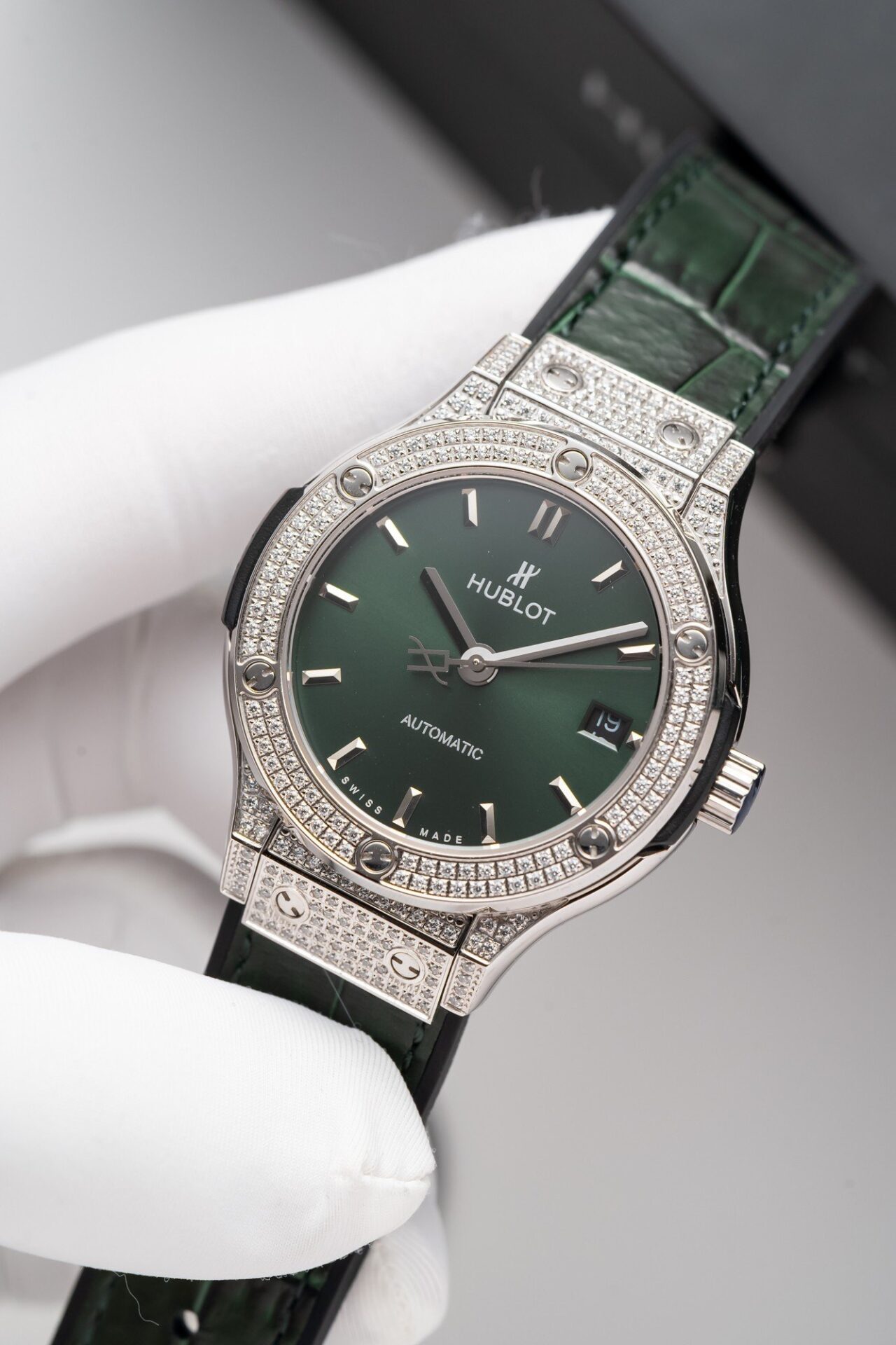 Hublot Classic Fusion Titanium Green Full Diamond Replica Watch 38mm