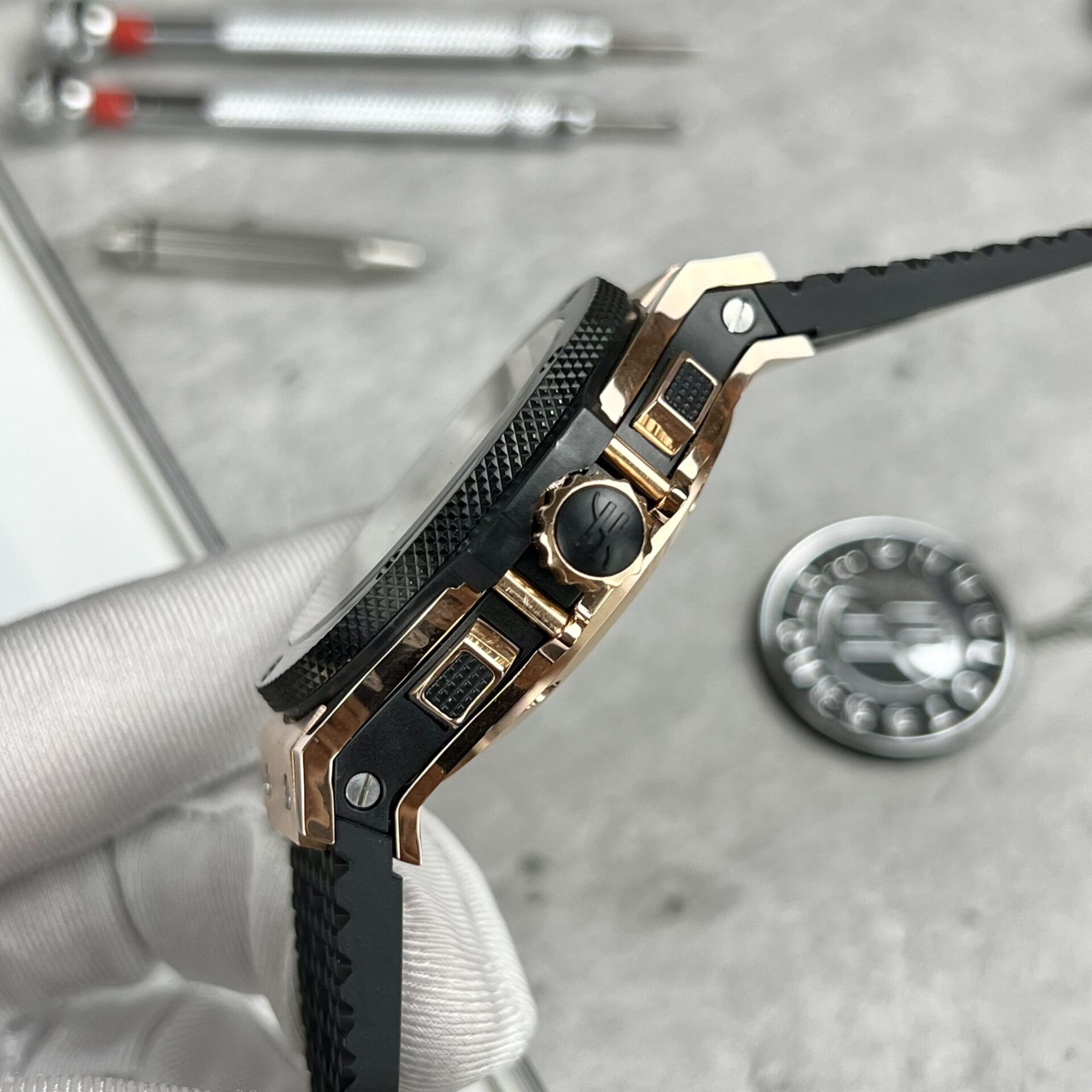 Hublot Fake Watch Big Bang King Gold Black Dial Rubber Strap 44mm