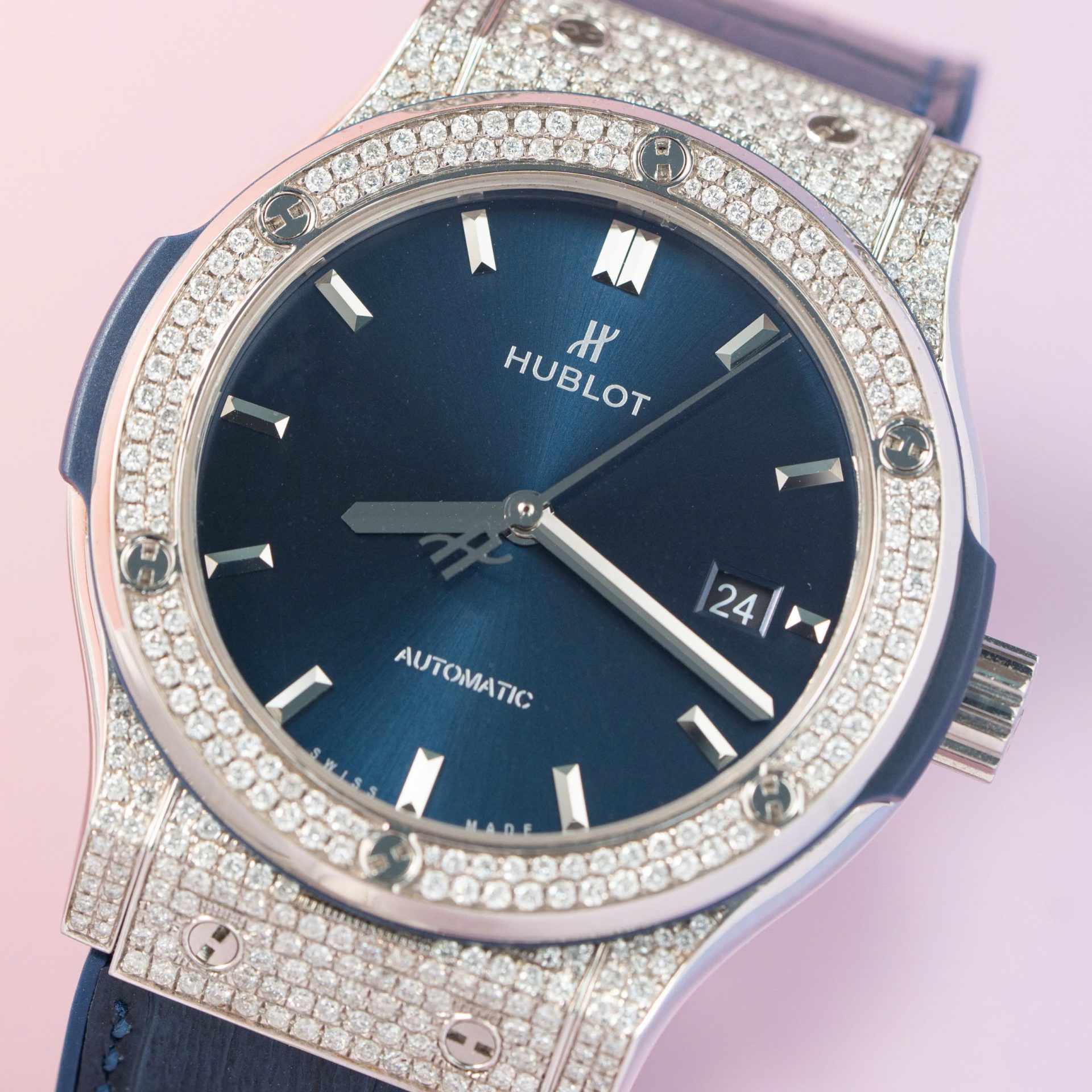 Hublot Replica 11 Watch Classic Fusion Full Natural Diamond Blue Dial 42mm