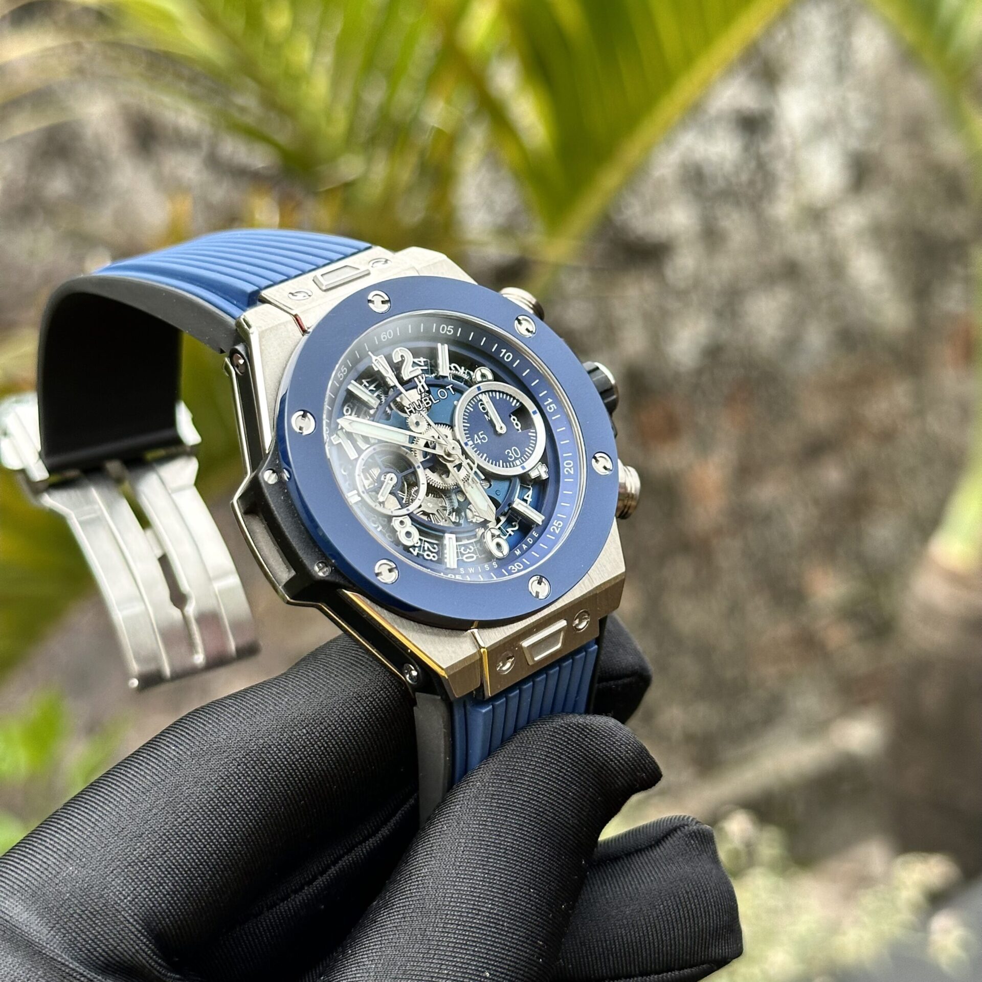 Hublot Replica Watch Big Bang Unico Titanium Blue Dial Rubber Strap 44mm