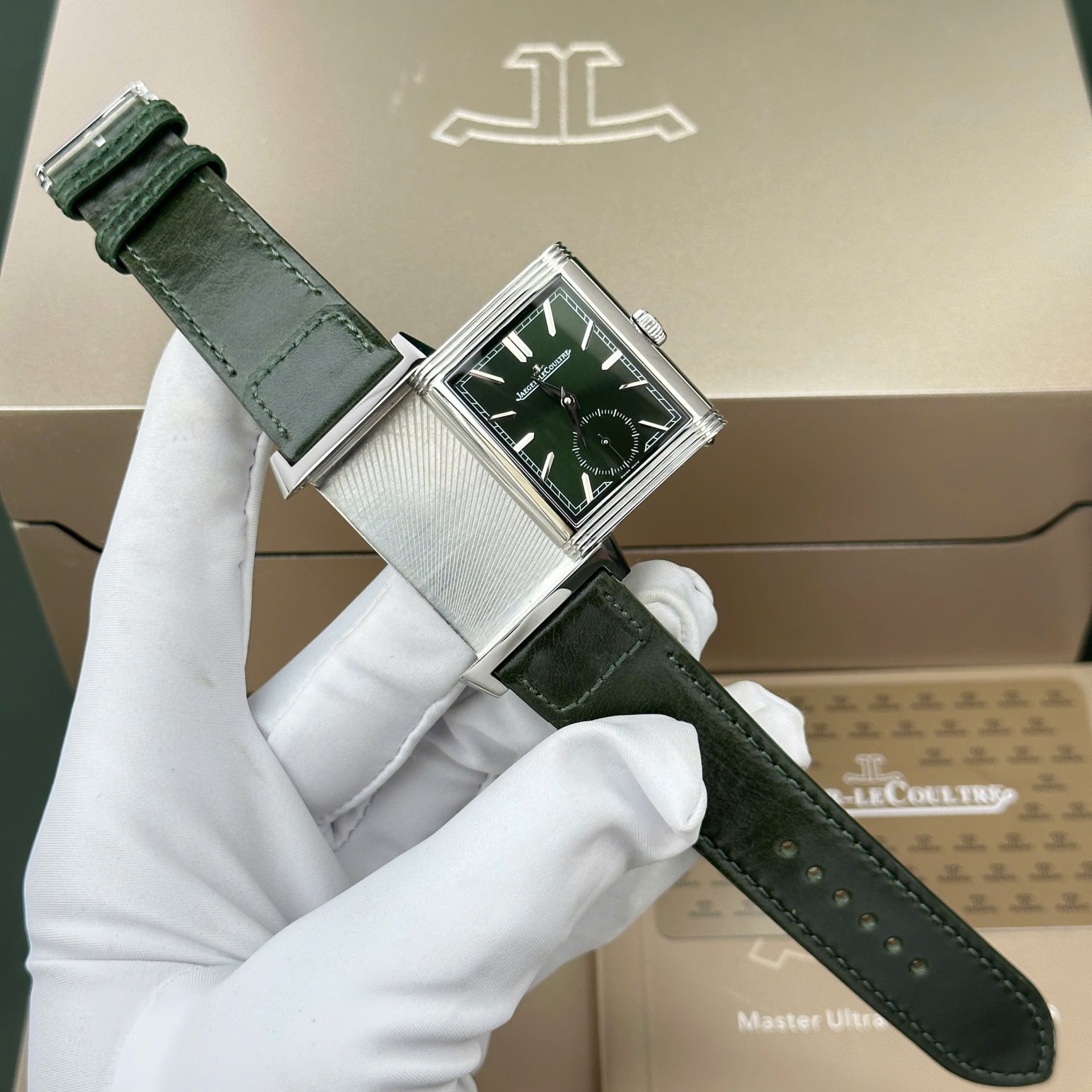 Jaeger LeCoultre Remake Watch Master Reverso Tribute Small Seconds 2 Dial Green And White 28.3x47mm