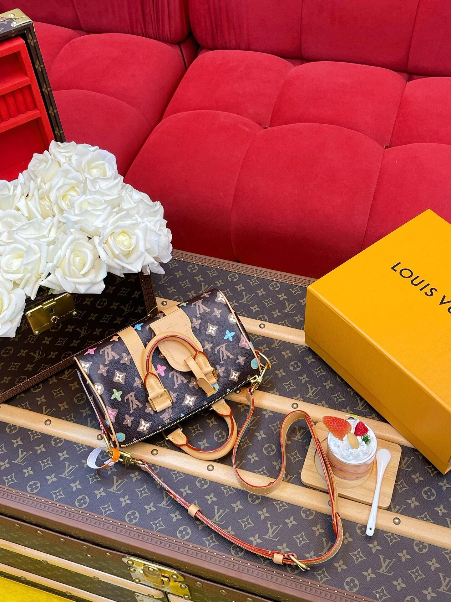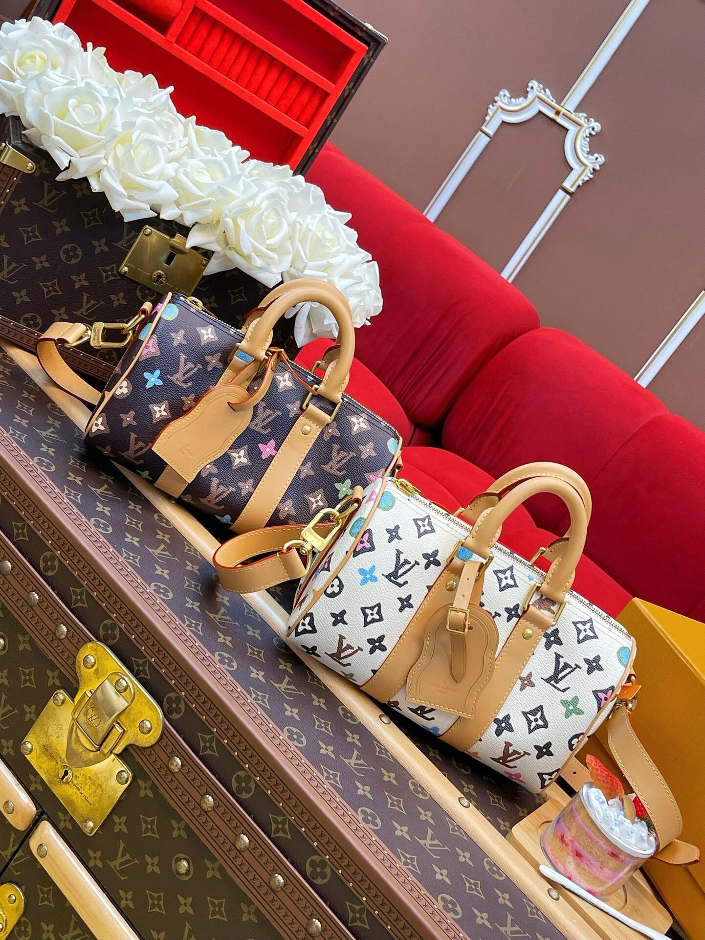 The Louis Vuitton Keepall Bandoulière 25 Handbag (Model: M24848) is a classic travel bag from the brand, crafted from Monogram canvas and featuring an adjustable shoulder strap, suitable for daily use or short trips.