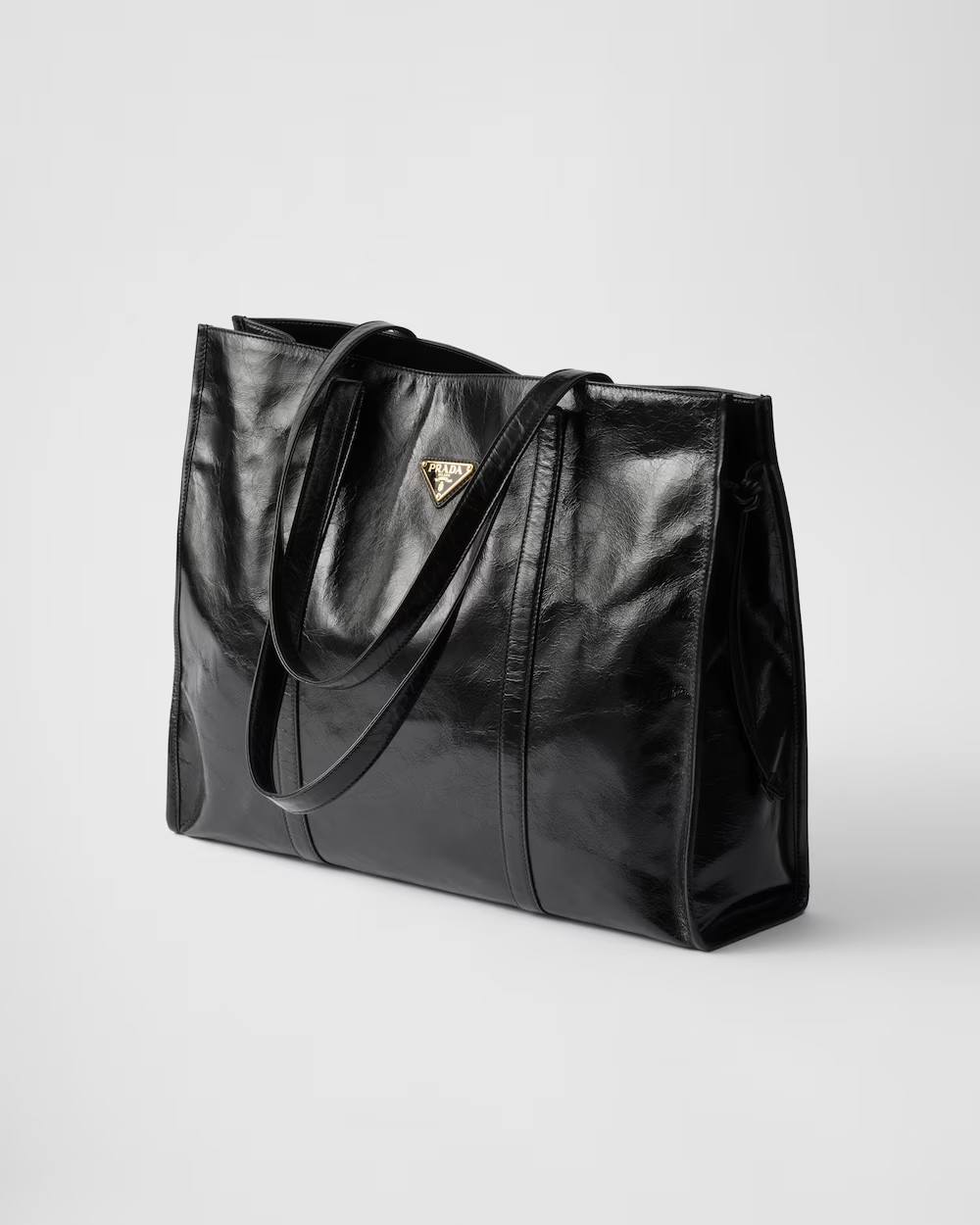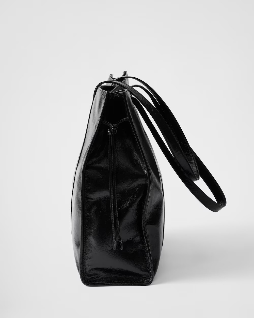 Elegant curved lines define this leather tote bag with an oversized silhouette, characterized by a large, convenient opening. The style has a clean, minimalist design enriched by simple yet refined details, an expression of the brand’s exceptional artisanal know-how. The accessory brightened by metal hardware is completed by the sophisticated signature of the lettering logo that enhances the refined simplicity of the bag.