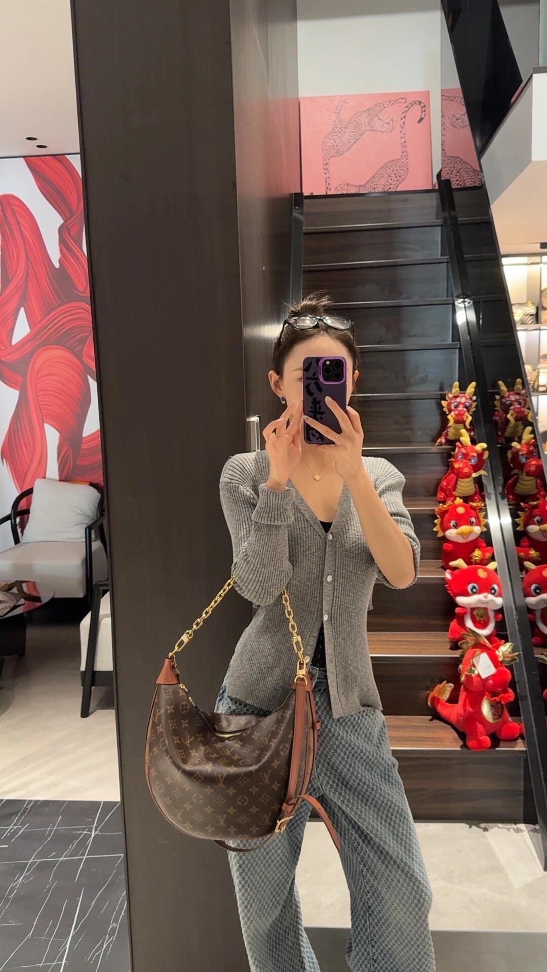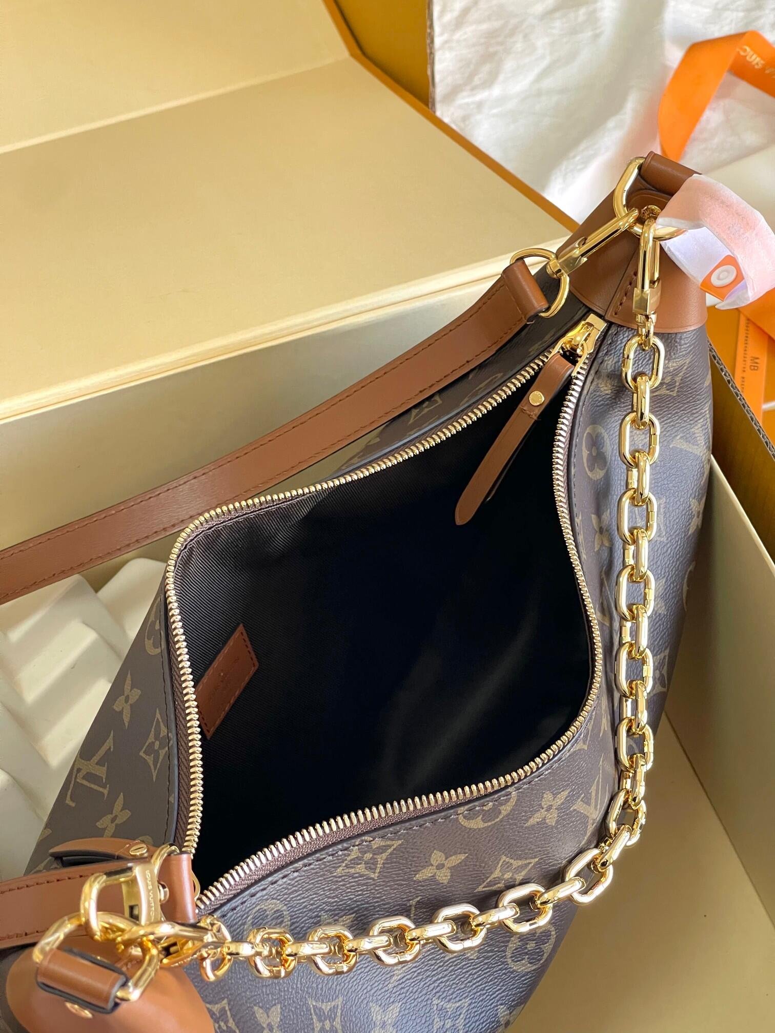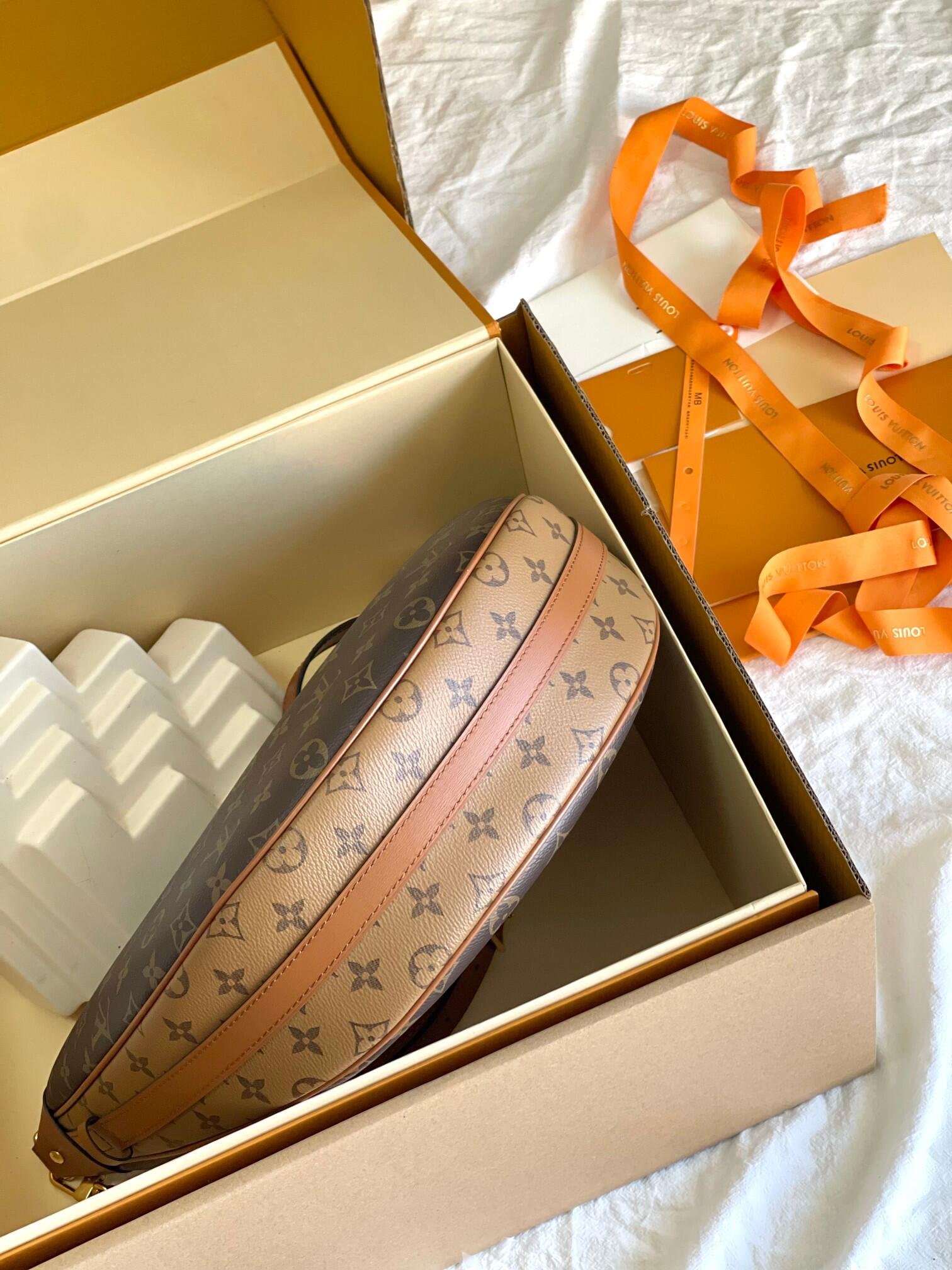 A supple and roomy bag, the Loop Hobo is made from a mix of Monogram and Monogram Reverse coated canvas. Its on-trend half-moon shape is emphasized by the leather corners. A removable chain and removable and adjustable leather strap enable multiple carrying options.