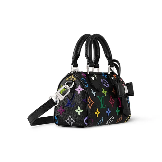 The scaled-down Nano Speedy makes a playful statement in Monogram coated canvas, which has been reworked in upbeat tones as part of the re-edition of the Louis Vuitton x Murakami collection. Natural cowhide leather trims add a timeless touch, as do two Toron top handles and a gleaming golden padlock in homage to the House’s travel heritage. Complete with a removable, adjustable strap and an exclusive LV x TM keybell.