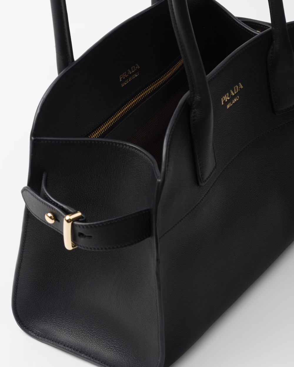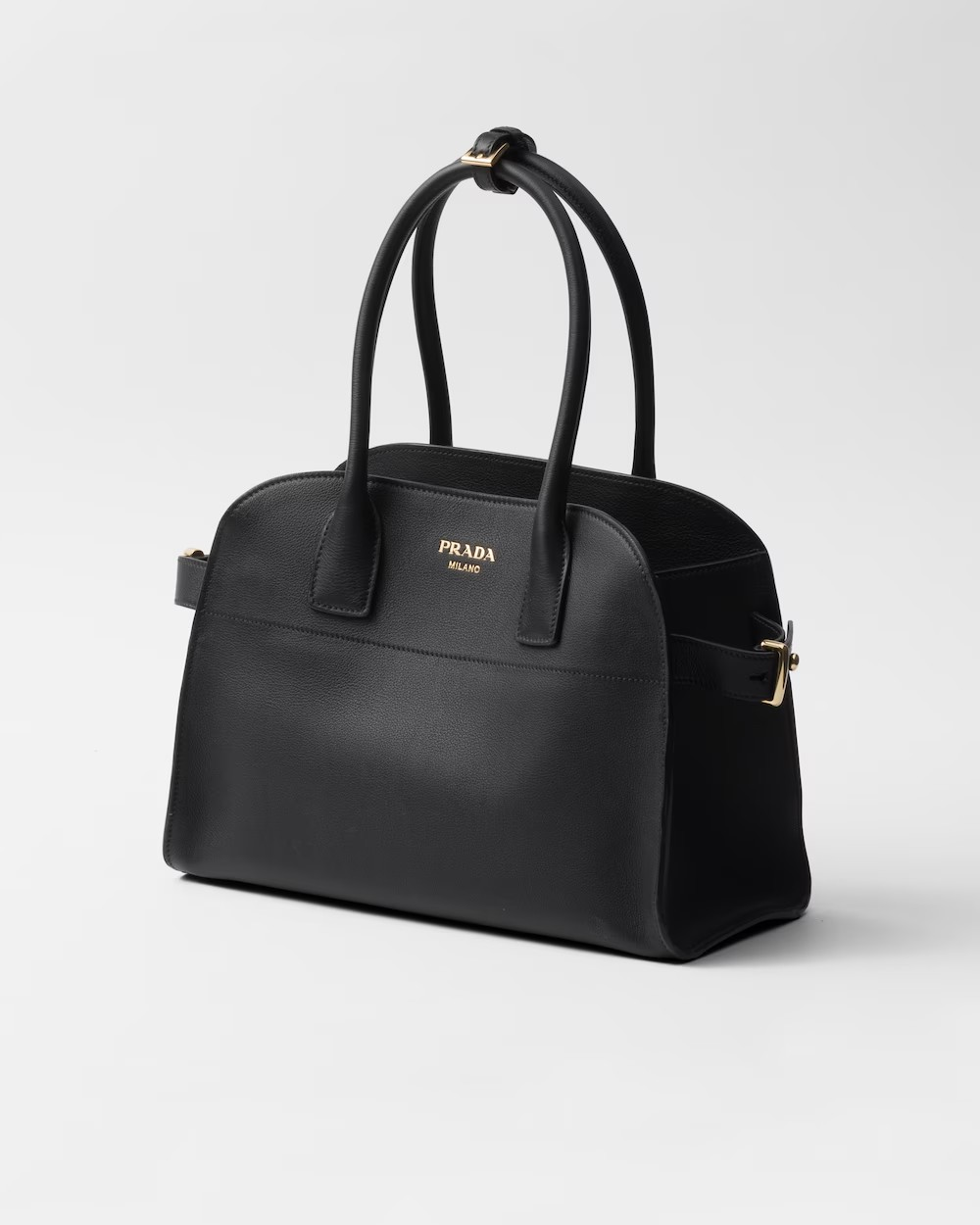 This tote bag with a structure silhouette expresses a modern character and sophisticated allure. The style, characterized by a convenient, large opening, has sleek, minimalist lines emphasized by the soft touch of soft grain leather. The pragmatic accessory is enriched with simple yet refined details that are an expression of the brand’s artisanal know-how. The design brightened by the metal hardware is completed by the elegant lettering logo that enhances the refined simplicity of the look.