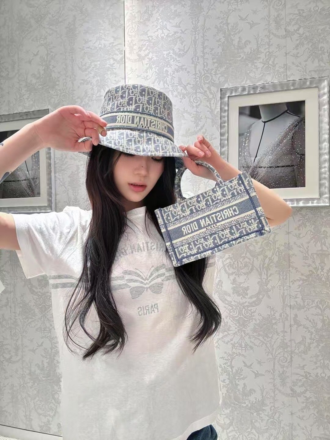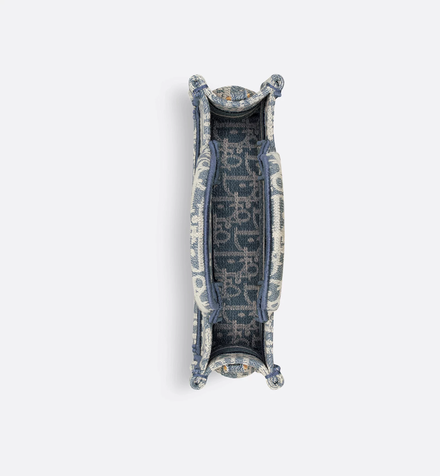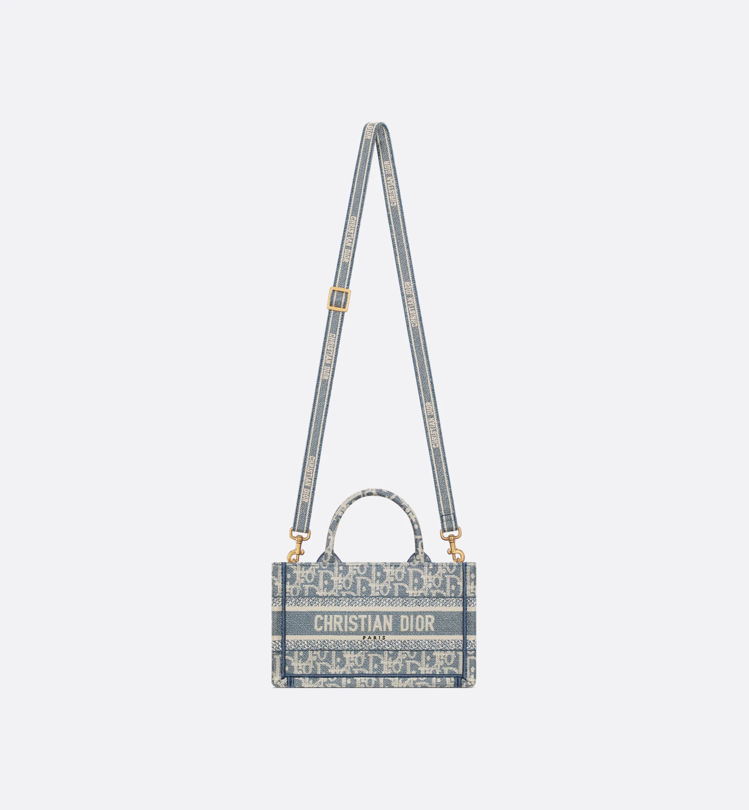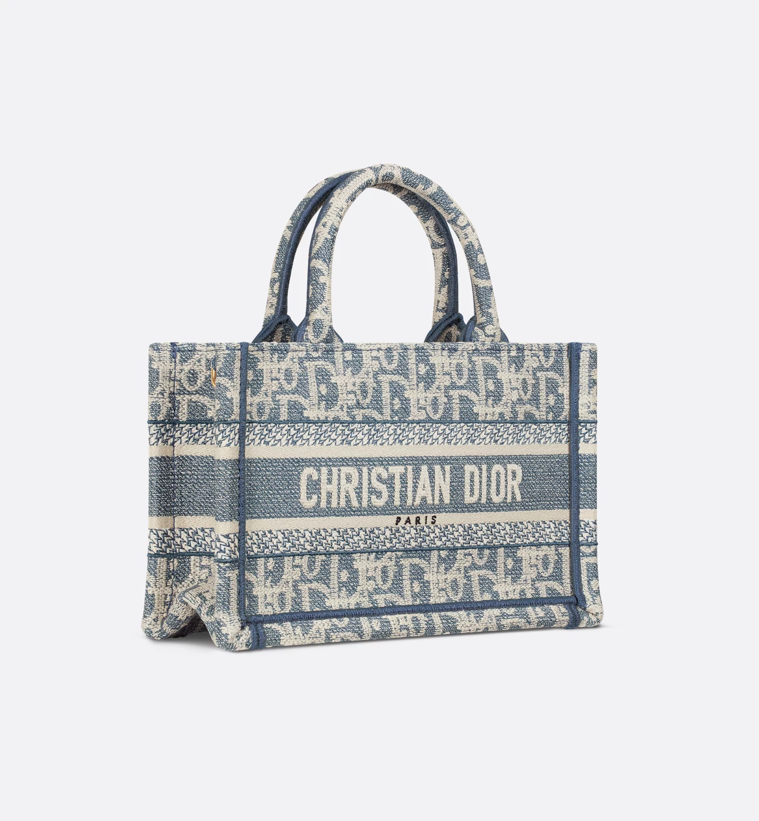 The Dior Book Tote is a House classic and original design by Maria Grazia Chiuri, Creative Director of Christian Dior. The style is crafted in blue lightweight cotton chambray and fully embroidered with ultra-durable raffia and cotton thread forming the iconic Dior Oblique motif. Adorned with the Christian Dior Paris signature, it exemplifies House savoir-faire and may be carried by hand, worn over the shoulder or crossbody thanks to its adjustable and removable strap. The miniature Dior Book Tote will pair well with other Dior Oblique Chambray creations.