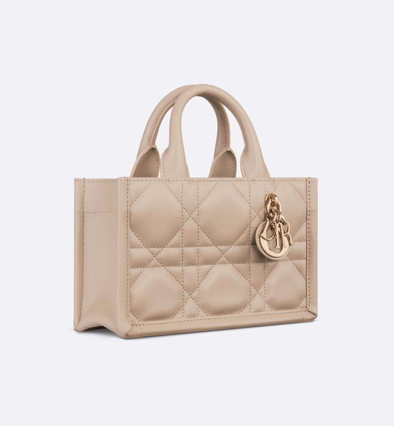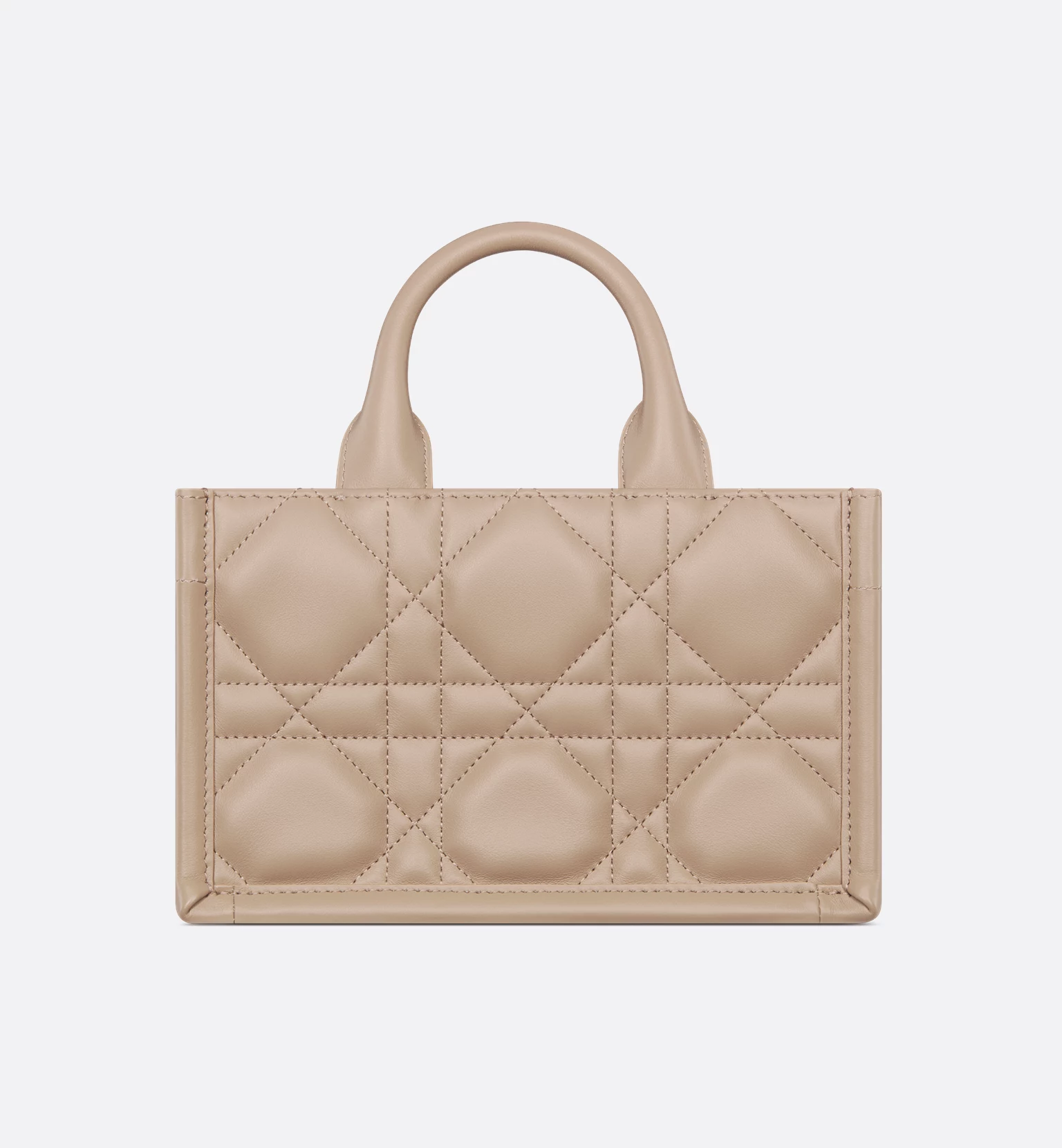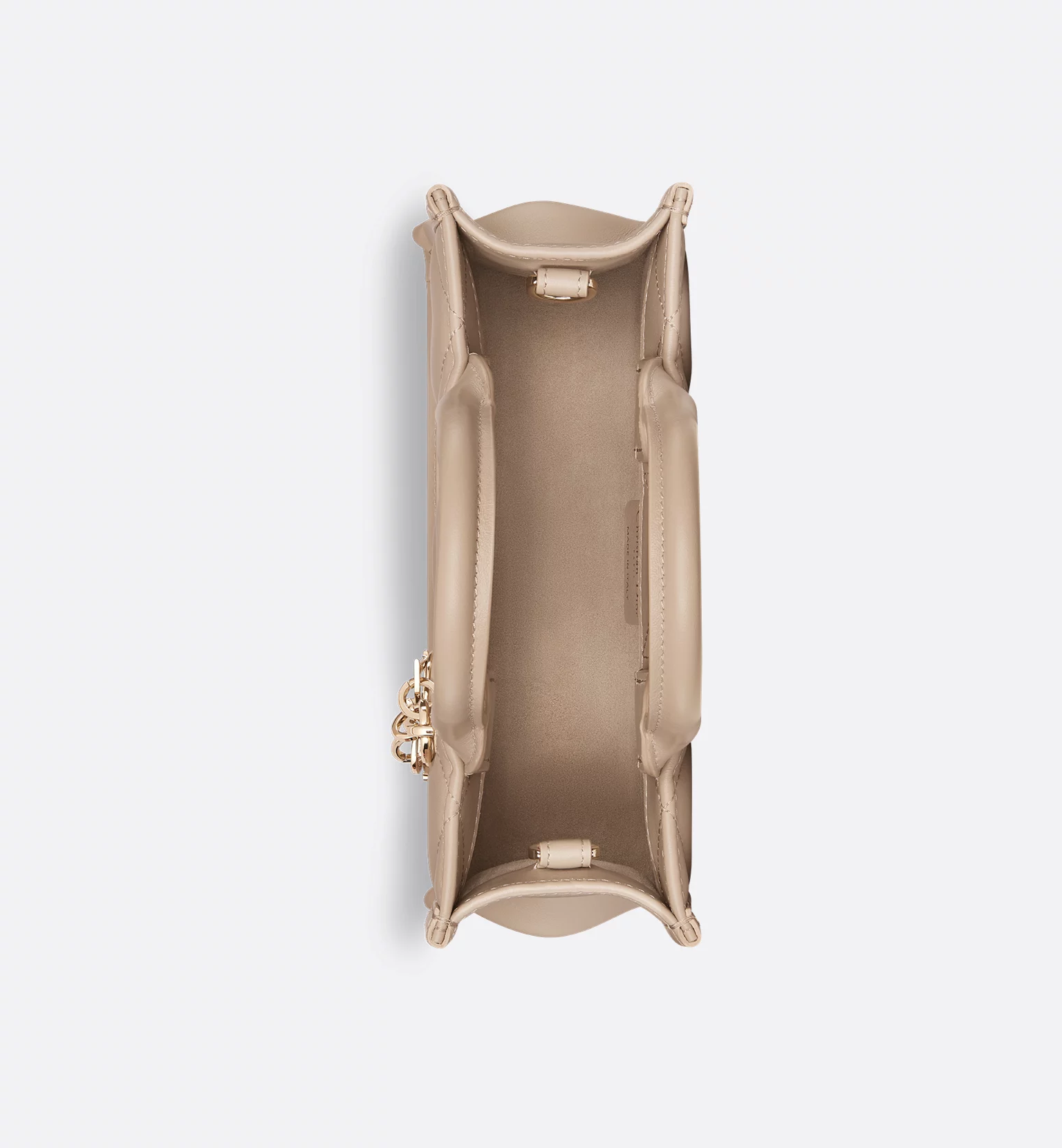 The Dior Book Tote is a House classic and original design by Maria Grazia Chiuri, Creative Director of Christian Dior. Constructed in warm taupe calfskin, it is embellished with hallmark Macrocannage topstitching and accented by pale gold-finish metal D.I.O.R. charms adorning one of the top handles. Exemplifying House savoir-faire, the miniature style features an adjustable and removable strap that allows it to be carried by hand, worn over the shoulder or crossbody.