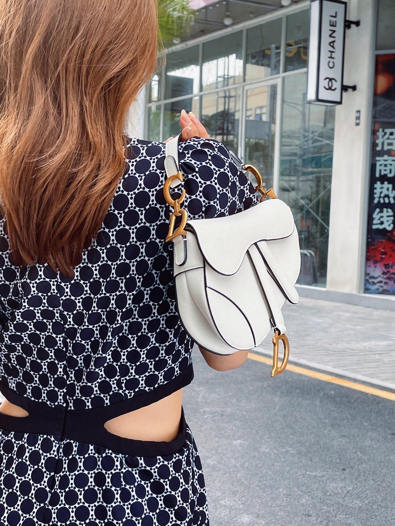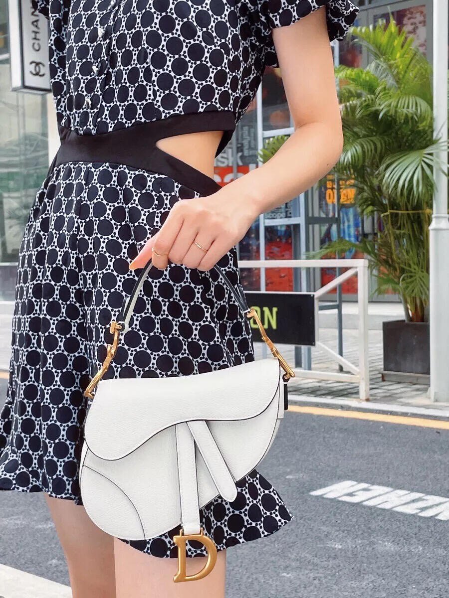 Maria Grazia Chiuri brings a fresh update to the iconic Saddle bag. Crafted in latte grained calfskin, the legendary design features a Saddle flap with a D stirrup strap and magnetic pull, as well as an antique gold-finish metal CD signature on either side of the top handle. Equipped with a thin, adjustable and removable strap, the miniature Saddle bag may be carried by hand, worn over the shoulder or crossbody.