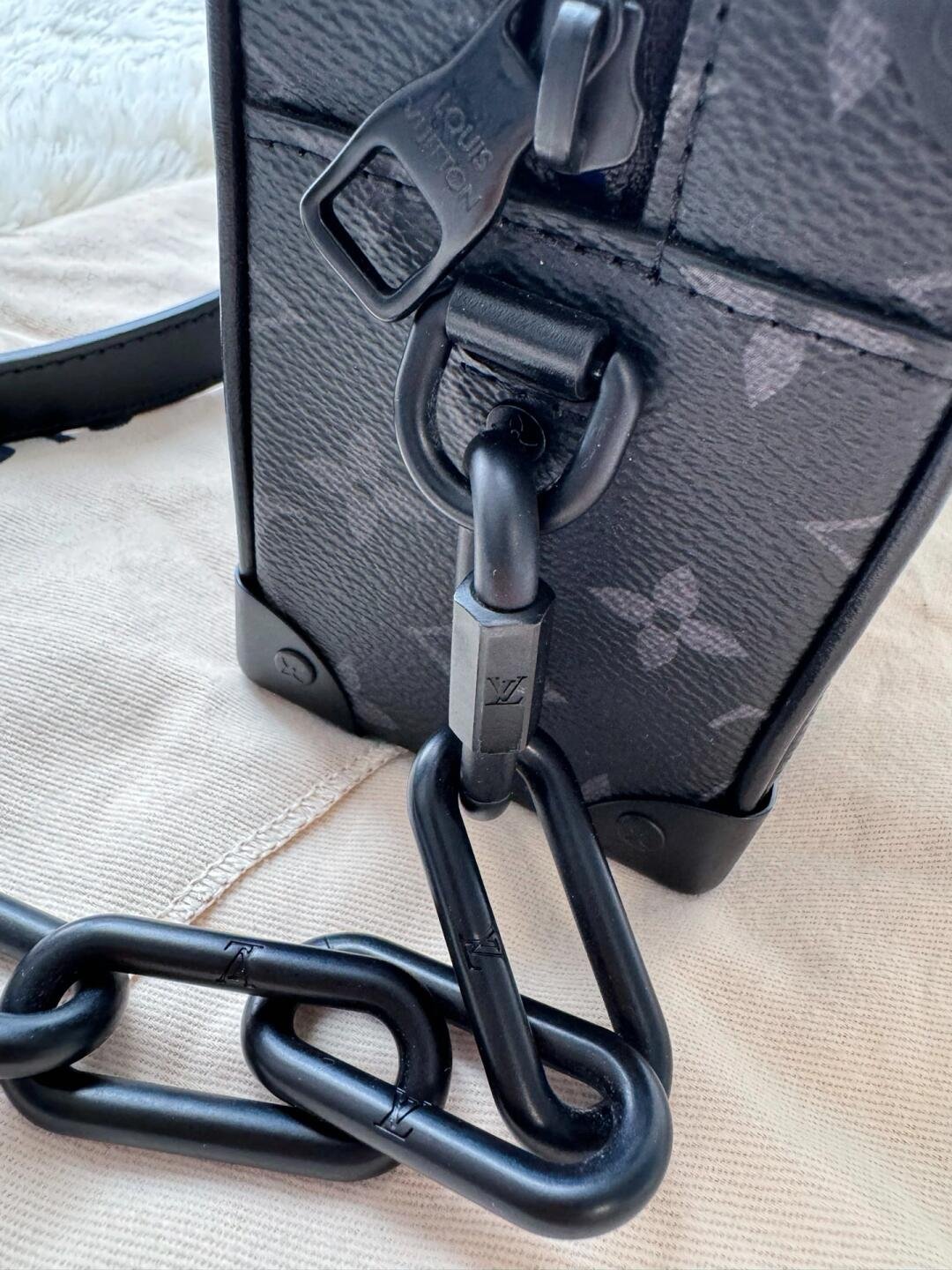 Created by Virgil Abloh for the Spring-Summer 2019 show, the Mini Soft Trunk bag is made from Monogram Eclipse canvas and boasts a matte-black chain in resin. This boxy yet elegant accessory evokes the House’s trunk making heritage. It can be worn over the shoulder or carried as a clutch.