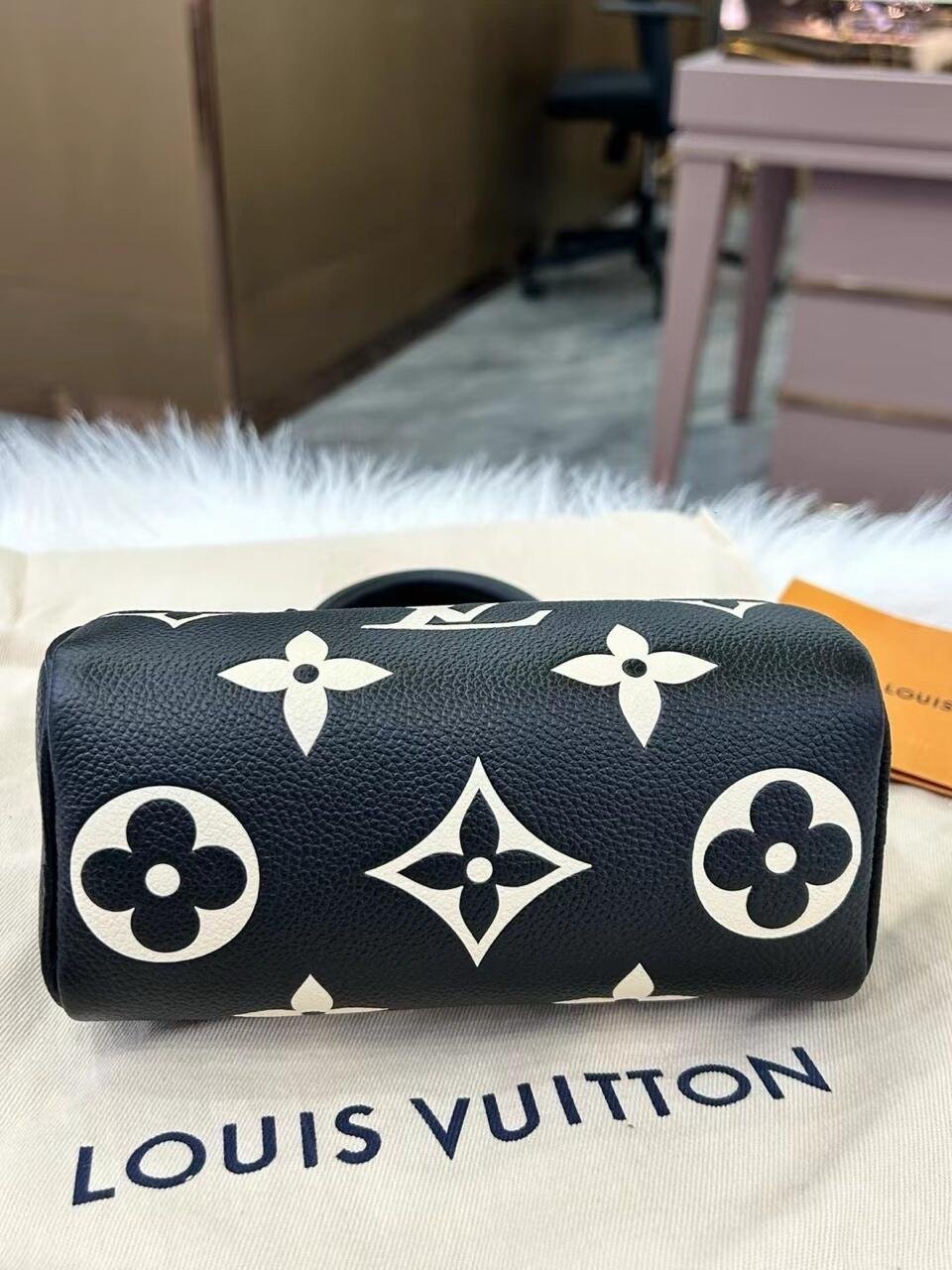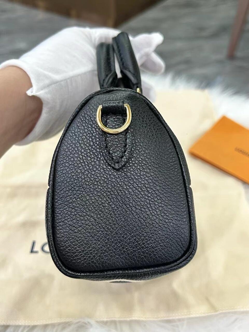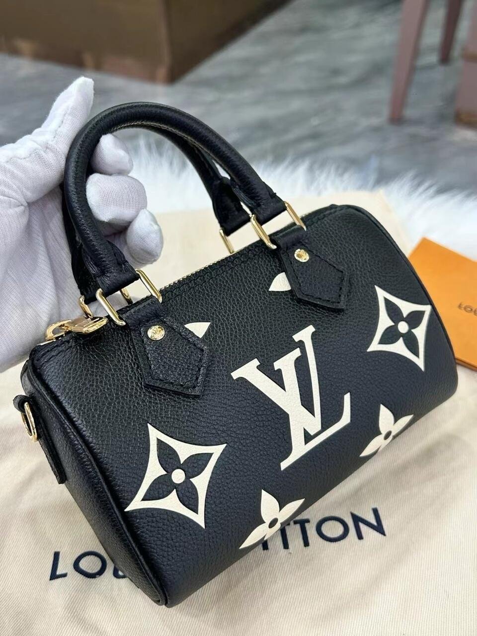 The Nano Speedy is crafted from supple, grained Monogram Empreinte leather, whose bicolor palette highlights the embossed Monogram pattern. This miniature replica of Louis Vuitton’s iconic Speedy bag has a secure zip closure, while its two handles and removable, adjustable shoulder strap offer multiple carry options.