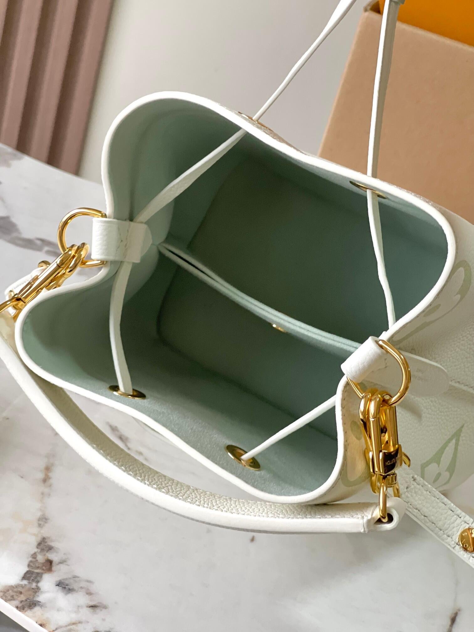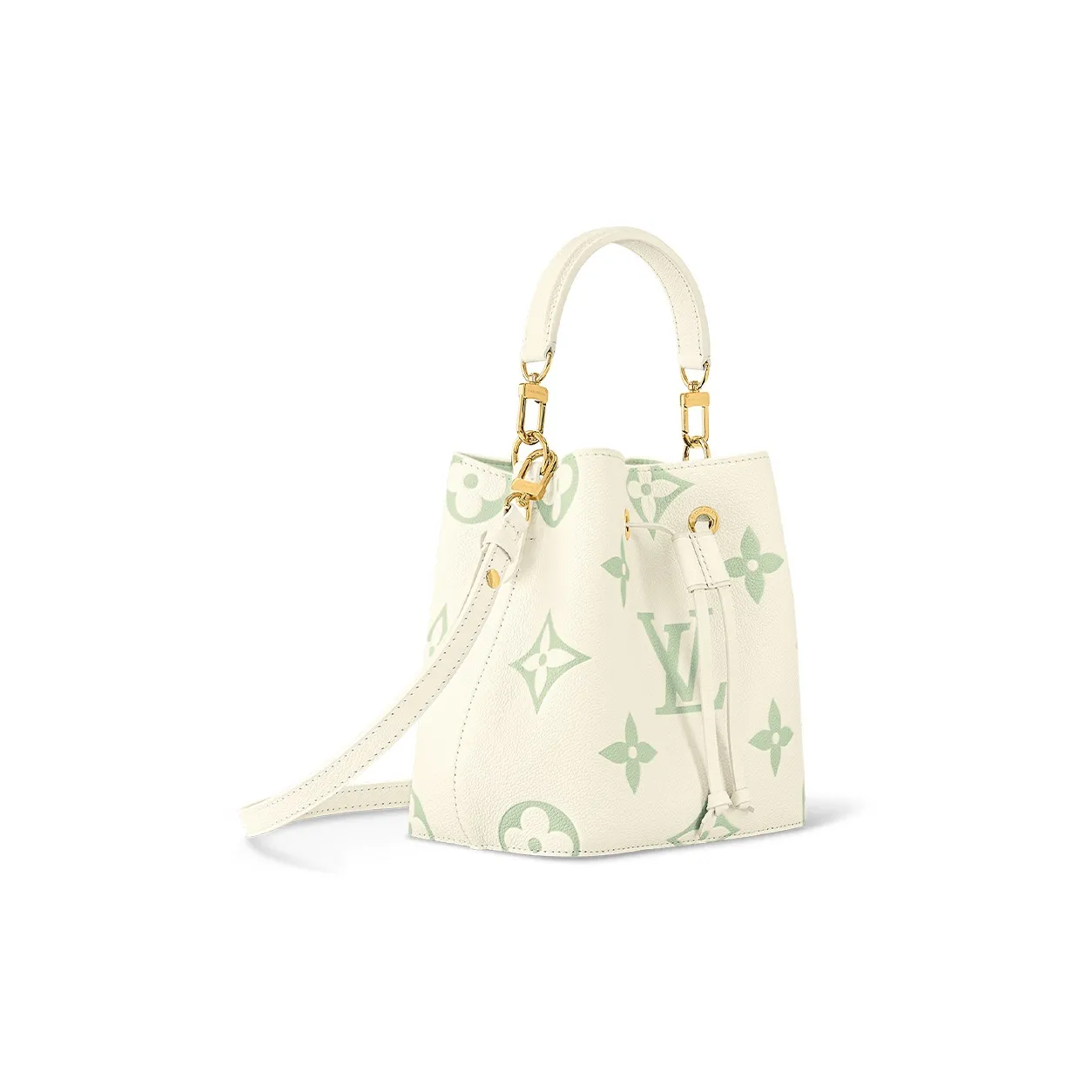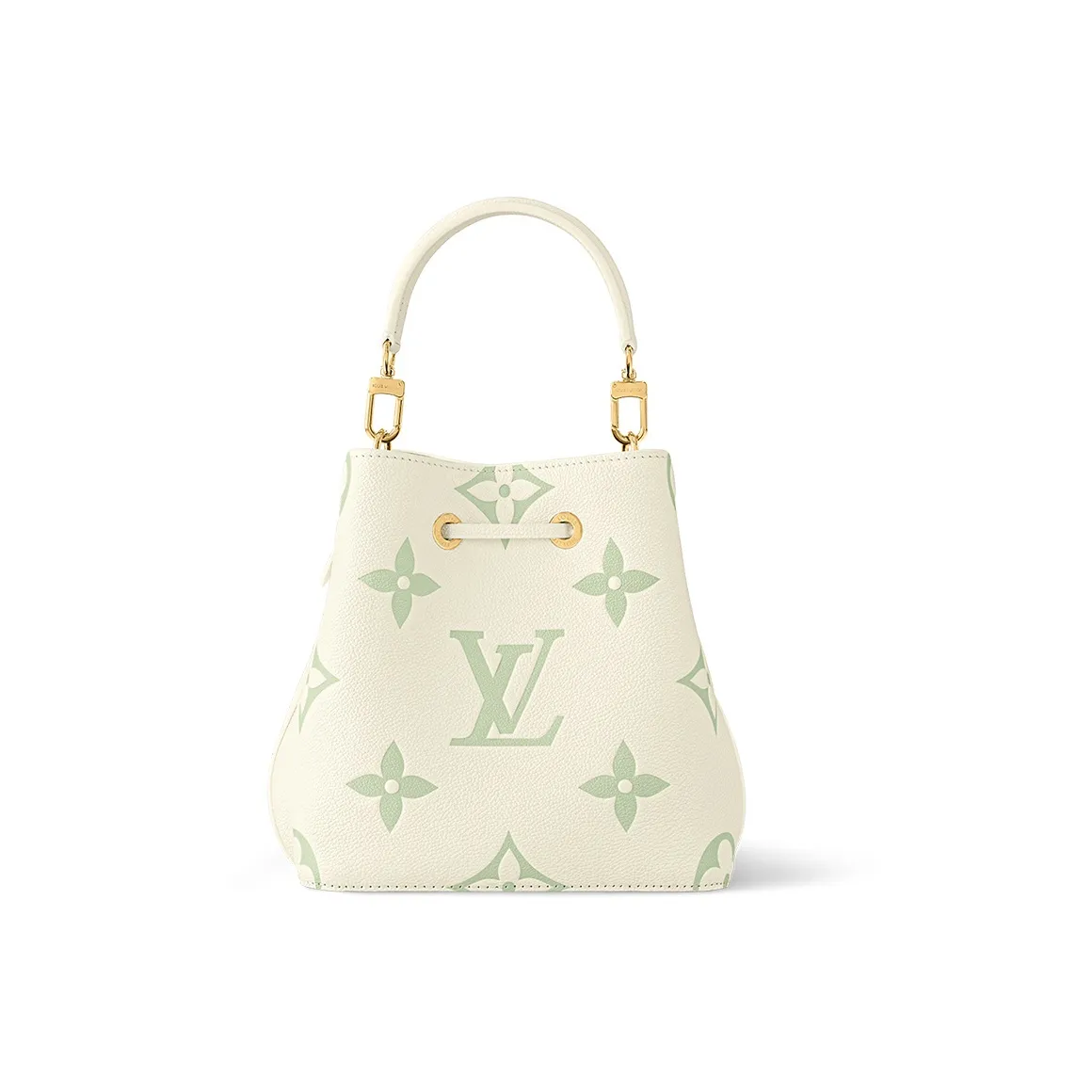 Inspired by colors of early spring, the pastel colorway of the Monogram Empreinte leather, with the LVs and Monogram Blossoms embossed and printed onto the cowhide, bring a delicate feel to this Néonoé BB bucket bag. The interior features matching lining and a central pocket that closes with a press stud.