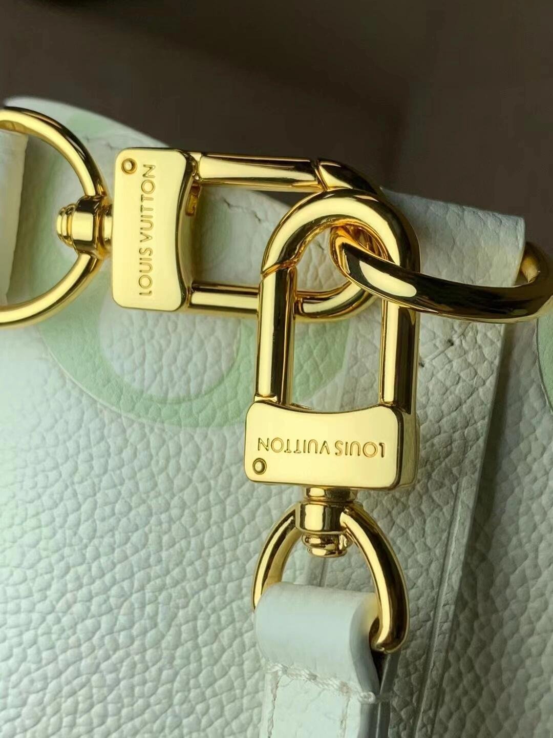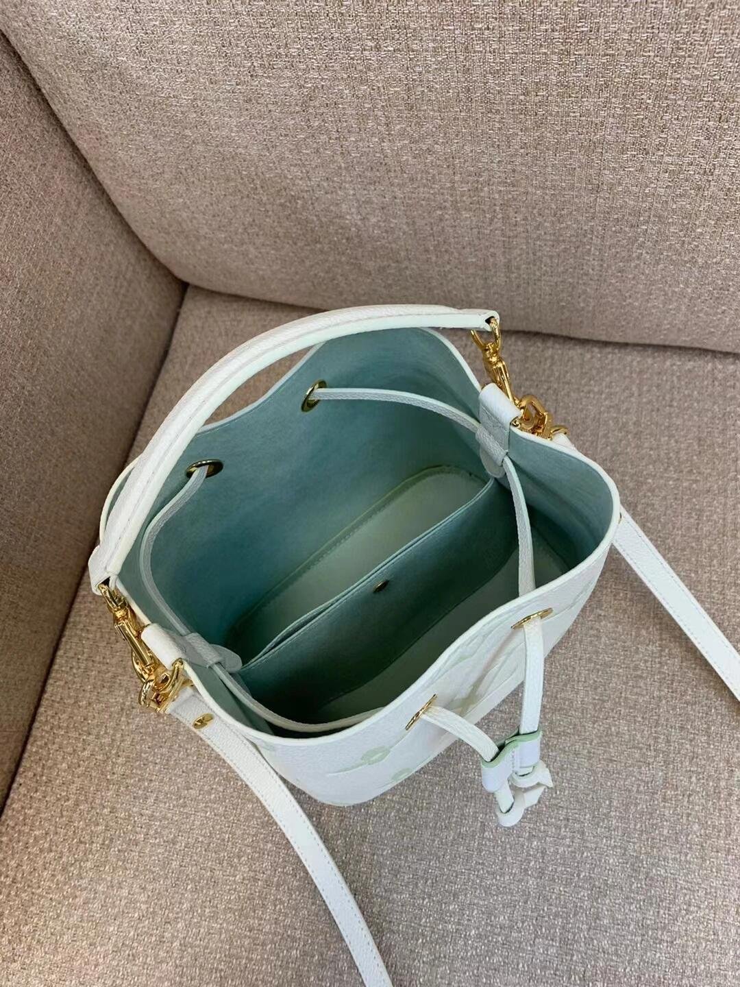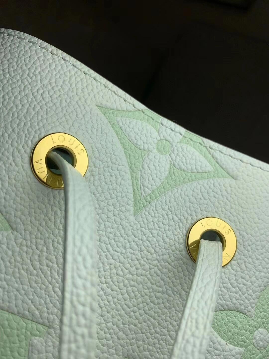 Inspired by colors of early spring, the pastel colorway of the Monogram Empreinte leather, with the LVs and Monogram Blossoms embossed and printed onto the cowhide, bring a delicate feel to this Néonoé BB bucket bag. The interior features matching lining and a central pocket that closes with a press stud.