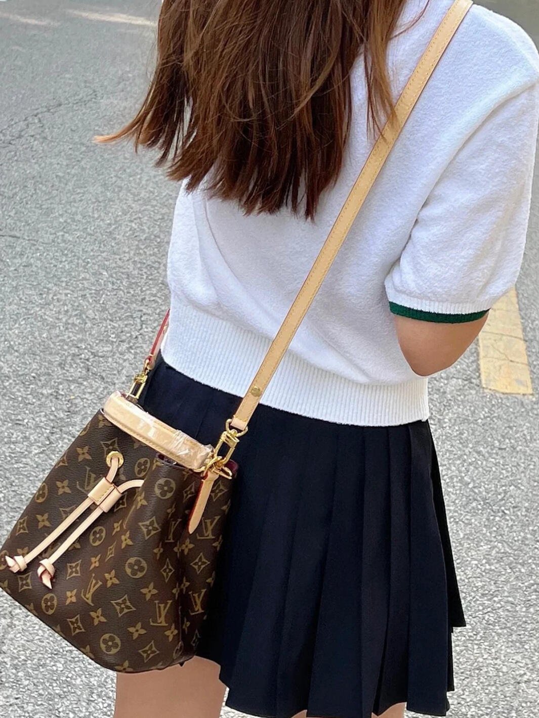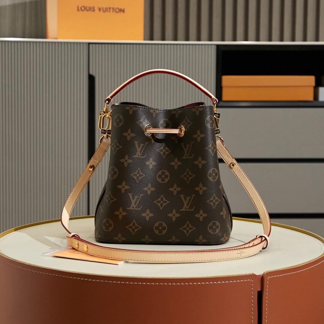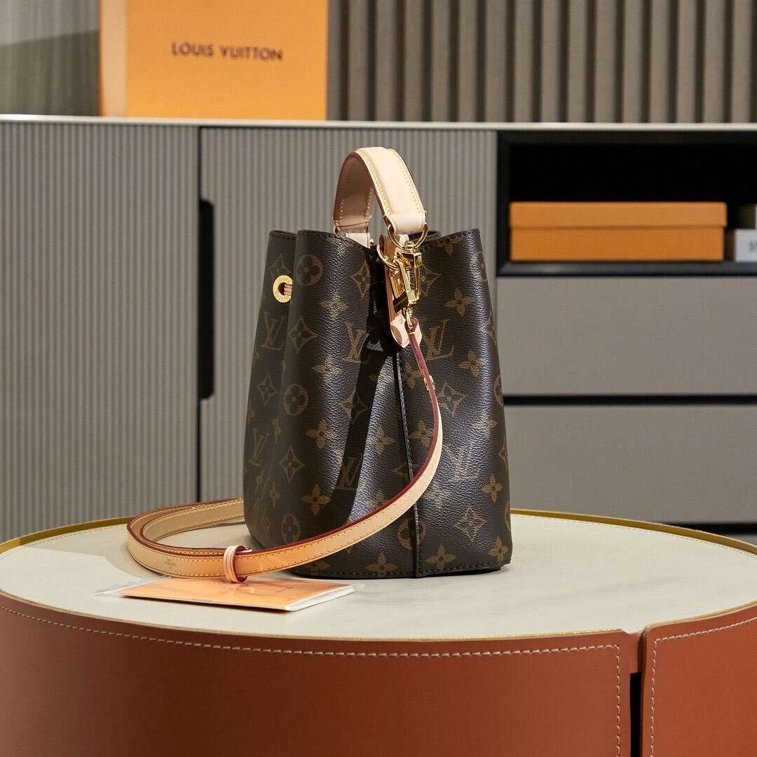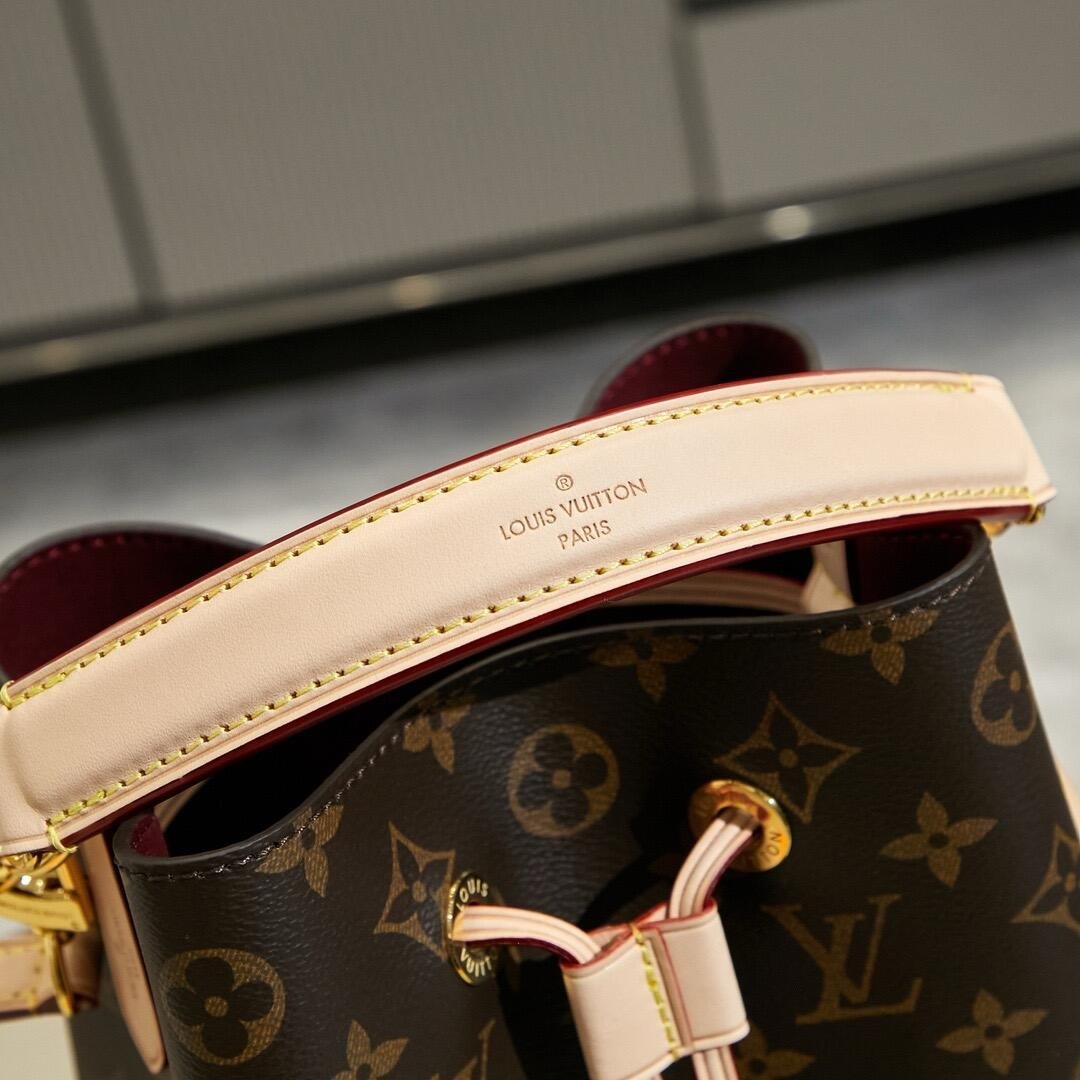 The NéoNoé BB in Monogram canvas with natural leather trim is a smaller interpretation of the House’s iconic NéoNoé bucket bag. Spacious enough to hold essentials such as keys, earphones, and an smartphone, it features a leather drawstring to close the bag and keep belongings secure. A removable handle and detachable, adjustable strap offer multiple carry options.