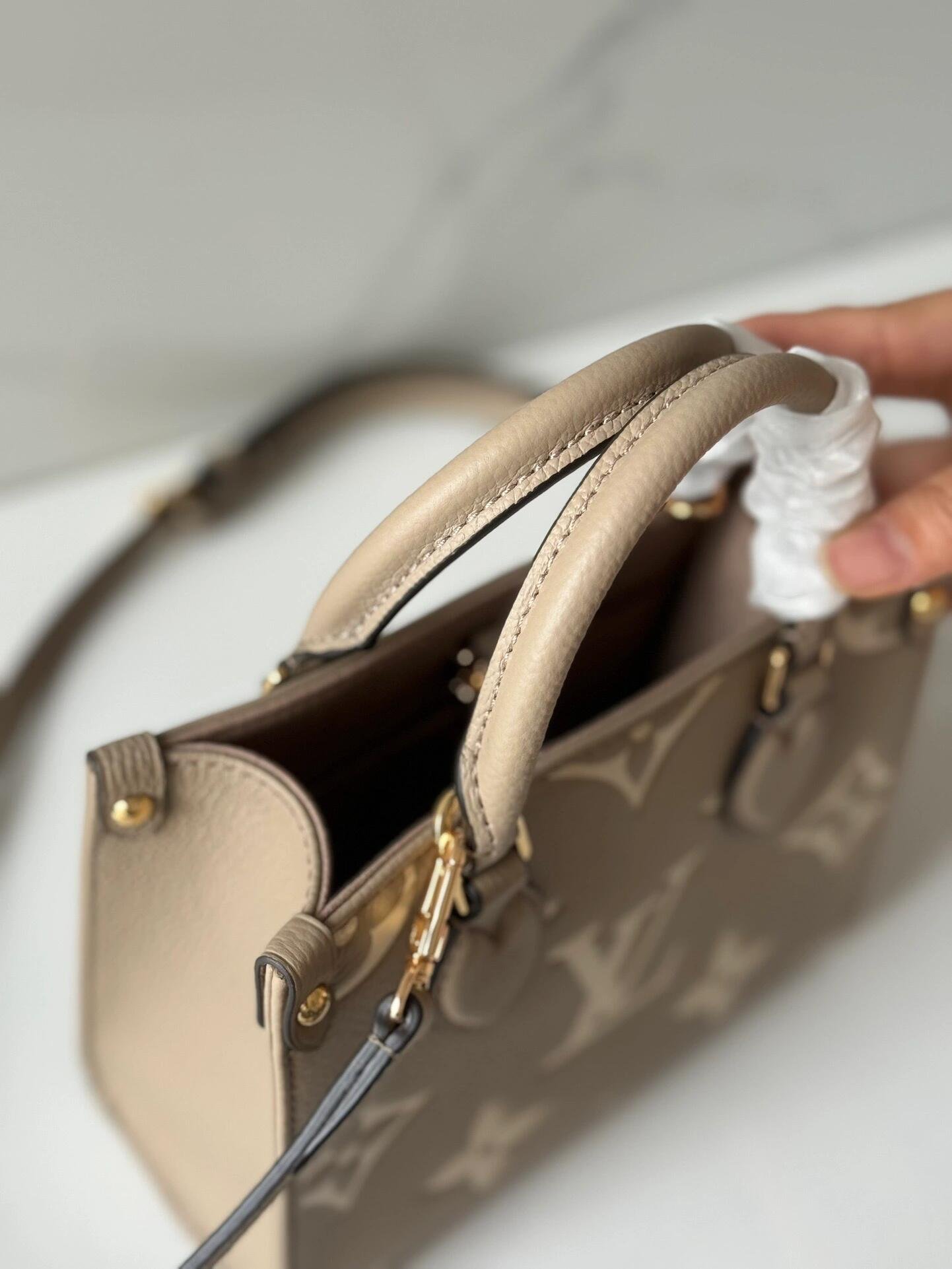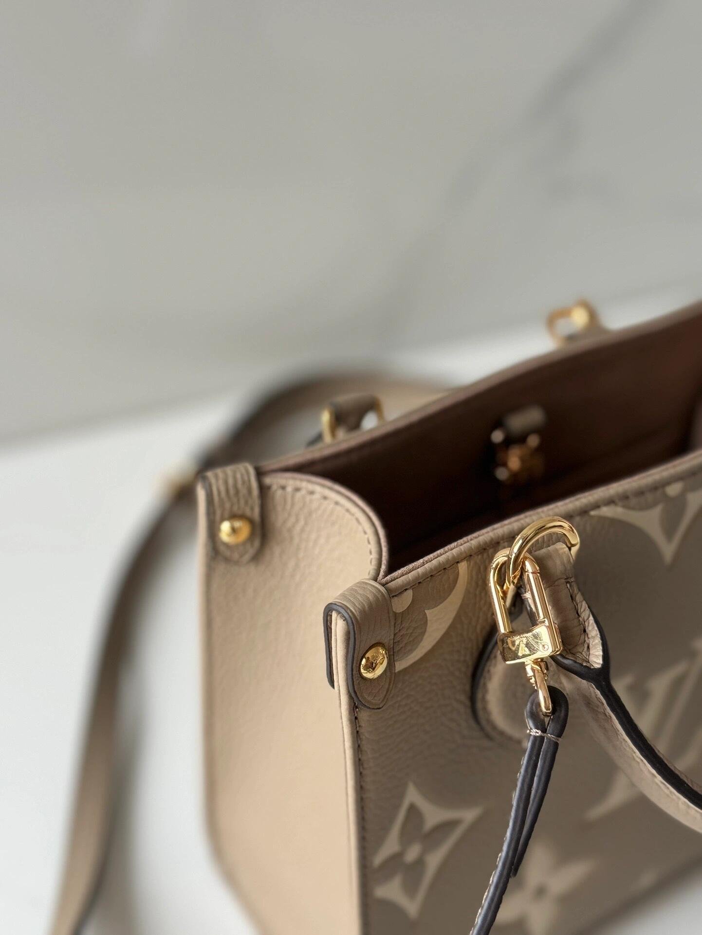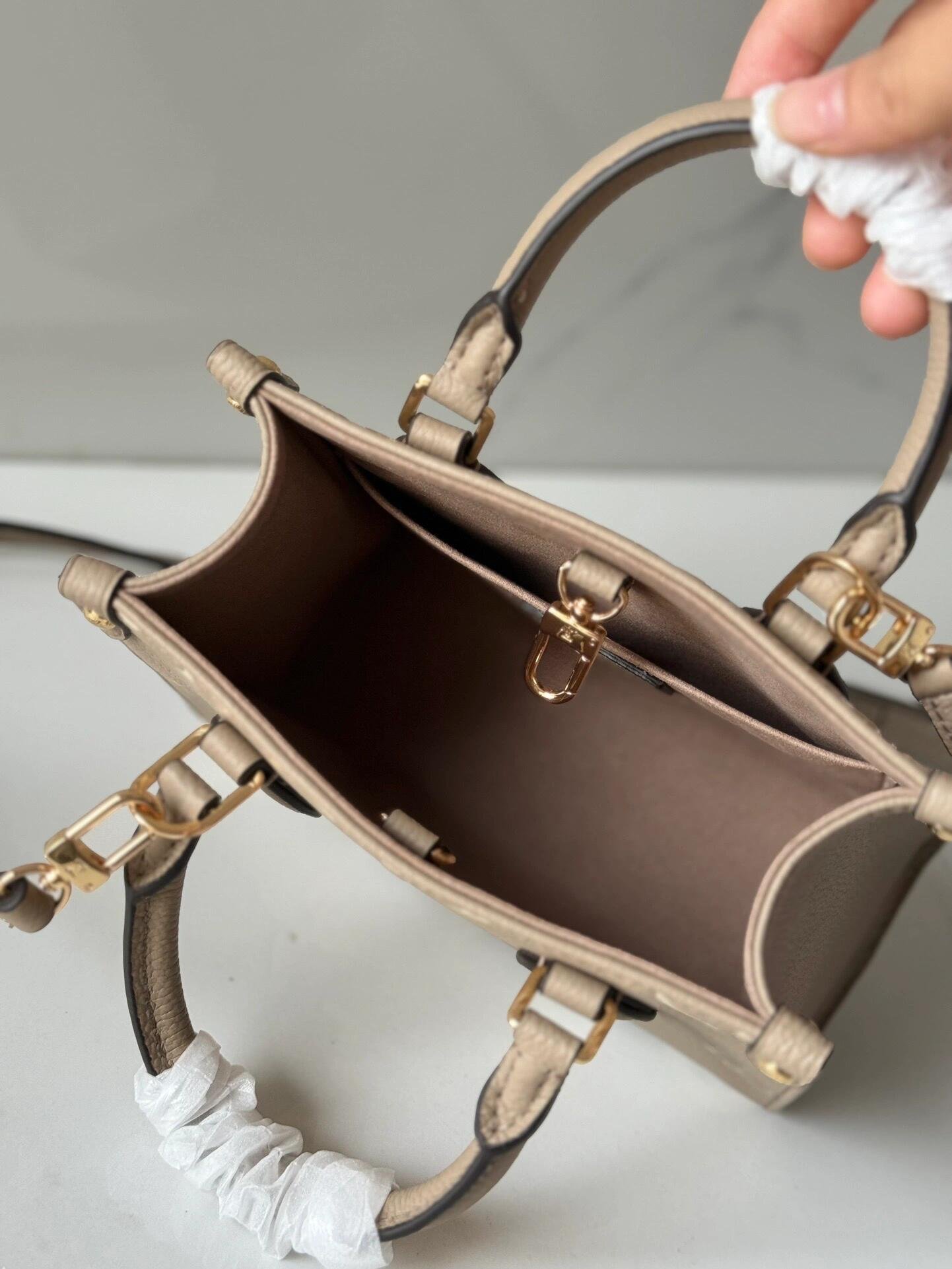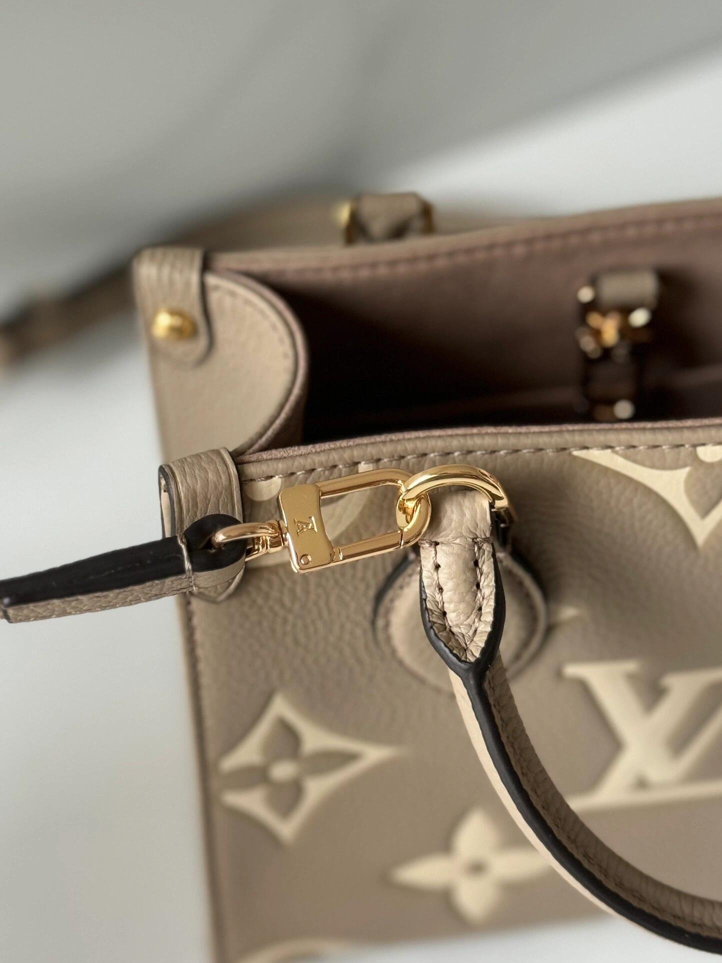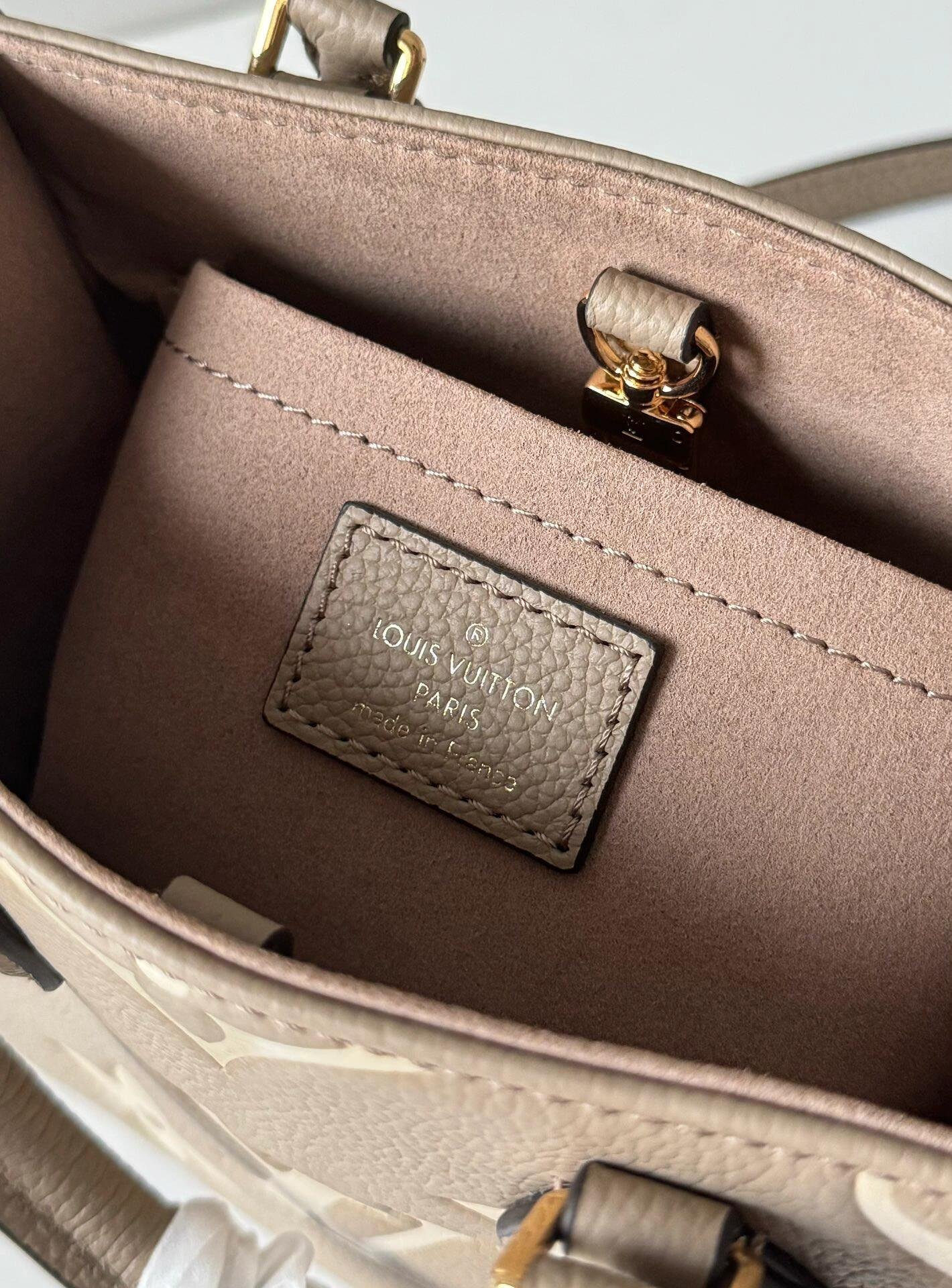 The OnTheGo BB is an on-trend micro-bag fashioned from Monogram Empreinte leather, with Monogram embossing. This tiny tote boasts all details of the full-size model – including the distinctive handle mounts and riveted leather tabs on the corners – and can fit a smart phone and compact wallet. A removable and adjustable strap enables shoulder carry.