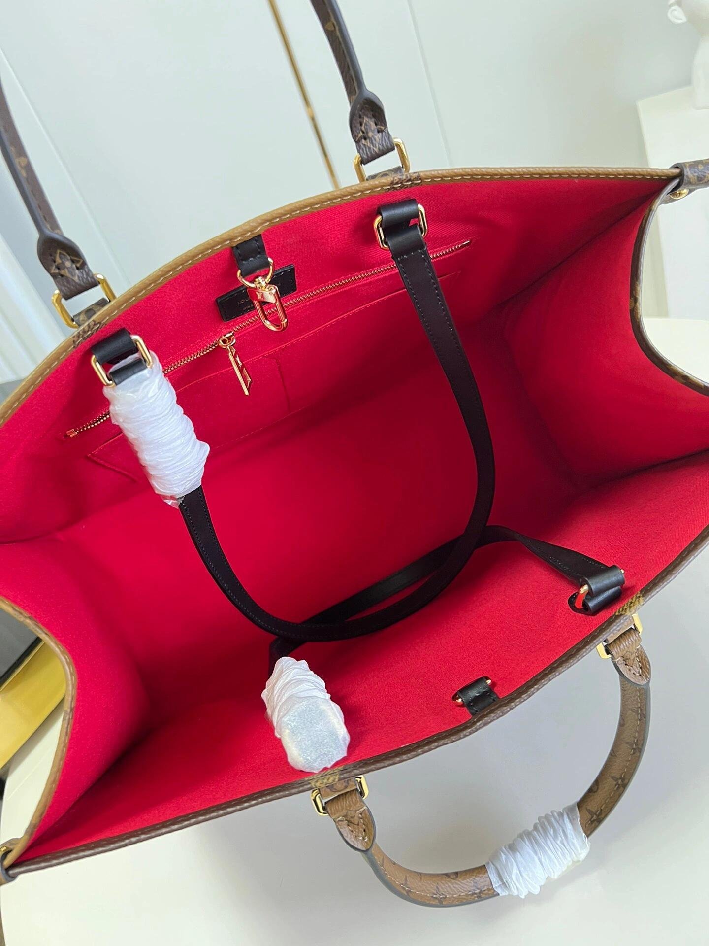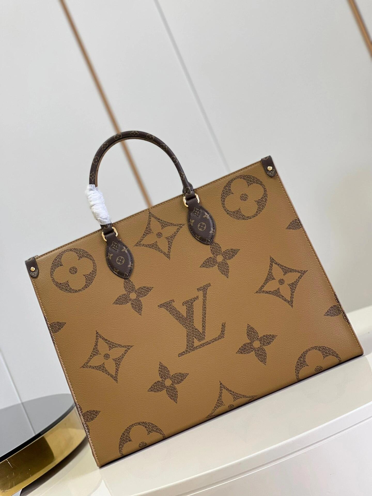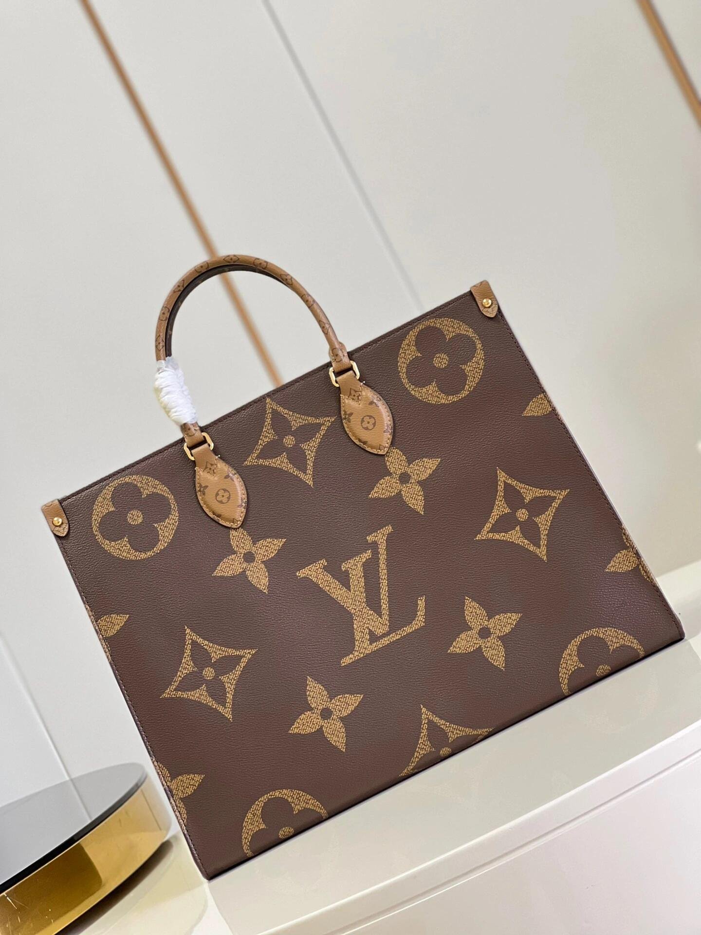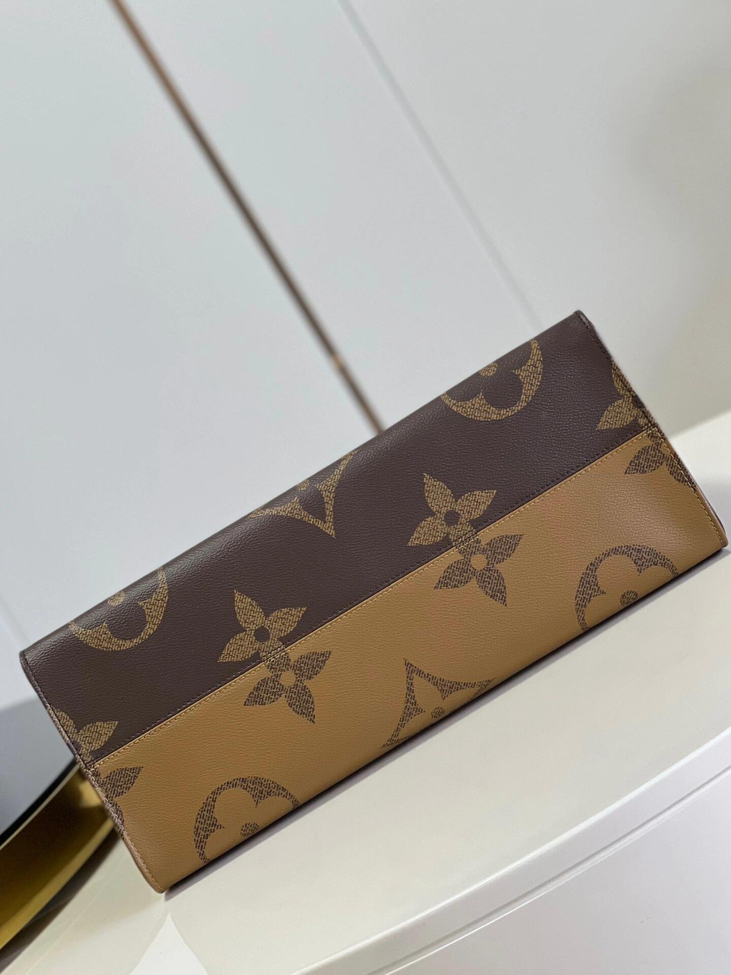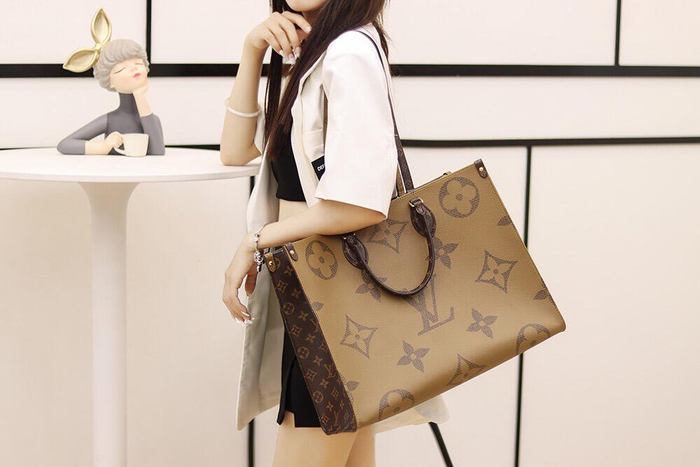 Fashioned from Monogram Giant canvas, the OnTheGo GM tote bag is as striking as it is practical. A Monogram Reverse pattern on the sides and handles creates a stylish contrast in color and scale. With its generous capacity, shoulder straps and iconic Toron top handles, this versatile GM model is an ideal bag for everyday wear.