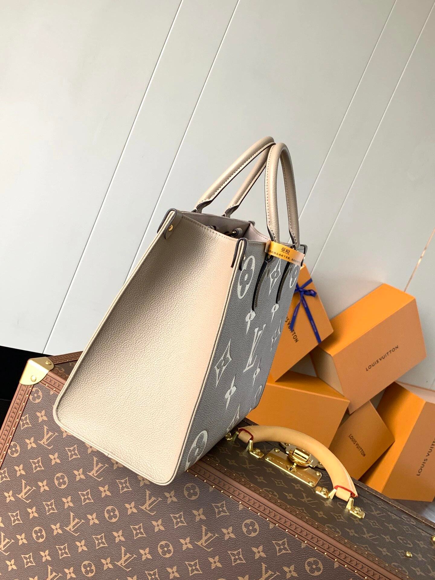 The OnTheGo MM is a medium-sized tote bag with two sets of handles, long and short, for hand and shoulder carry. Fashioned from supple grained cowhide leather, it features a Monogram pattern, printed on and embossed into the leather. The spacious interior, which can hold a laptop and other work essentials, make it a versatile everyday bag.